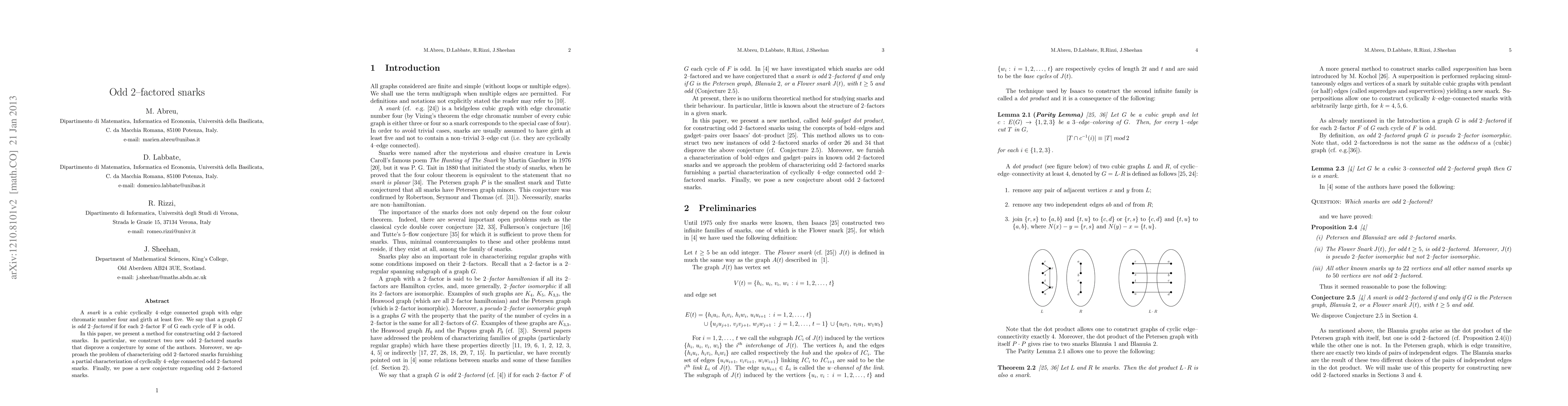 This paper introduces a method to construct two families of odd 2-factored snarks, disproving a previous conjecture. It also partially characterizes cyclically 4-edge connected odd 2-factored snarks and proposes a new conjecture in the field.