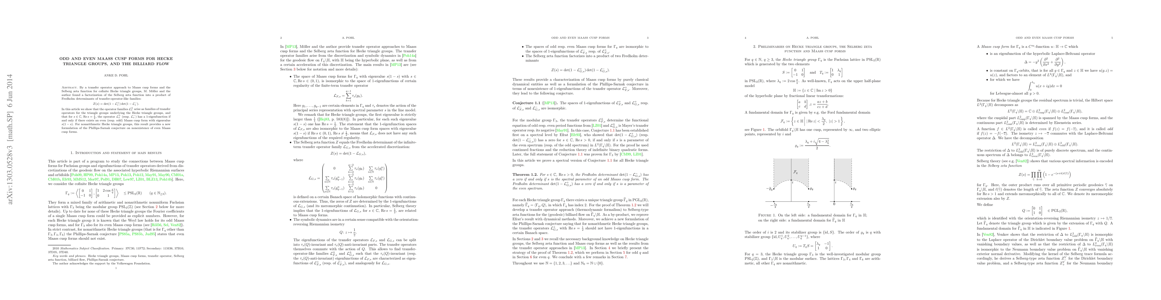 This paper demonstrates a factorization of the Selberg zeta function for Hecke triangle groups into Fredholm determinants, showing that the operators involved correspond to transfer operators for triangle groups. It links the existence of even and odd Maass cusp forms to eigenvalues of these operators, providing a new perspective on the Phillips-Sarnak conjecture.