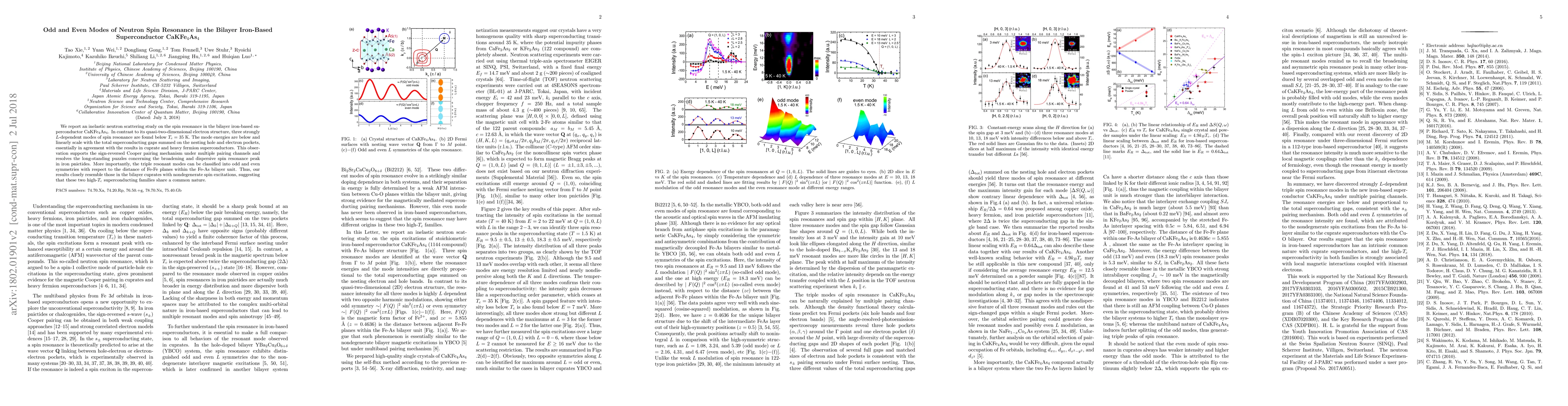 This study reveals three distinct spin resonance modes in the bilayer iron-based superconductor CaKFe$_4$As$_4$, which exhibit odd and even symmetries relative to Fe-Fe plane distances. The findings support a sign-reversed Cooper pairing mechanism and suggest shared characteristics with bilayer cuprate superconductors.