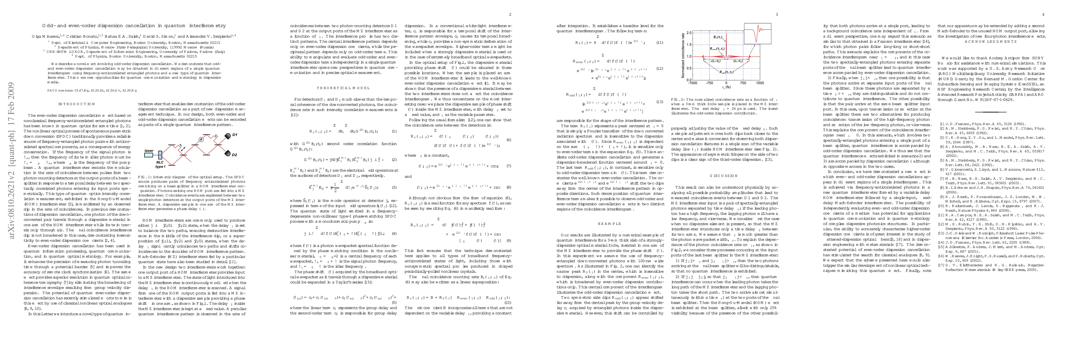 We describe a novel effect involving odd-order dispersion cancellation. We demonstrate that odd- and even-order dispersion cancellation may be obtained in different regions of a single quantum interferogram using frequency-anticorrelated entangled photons and a new type of quantum interferometer. This offers new opportunities for quantum communication and metrology in dispersive media.
