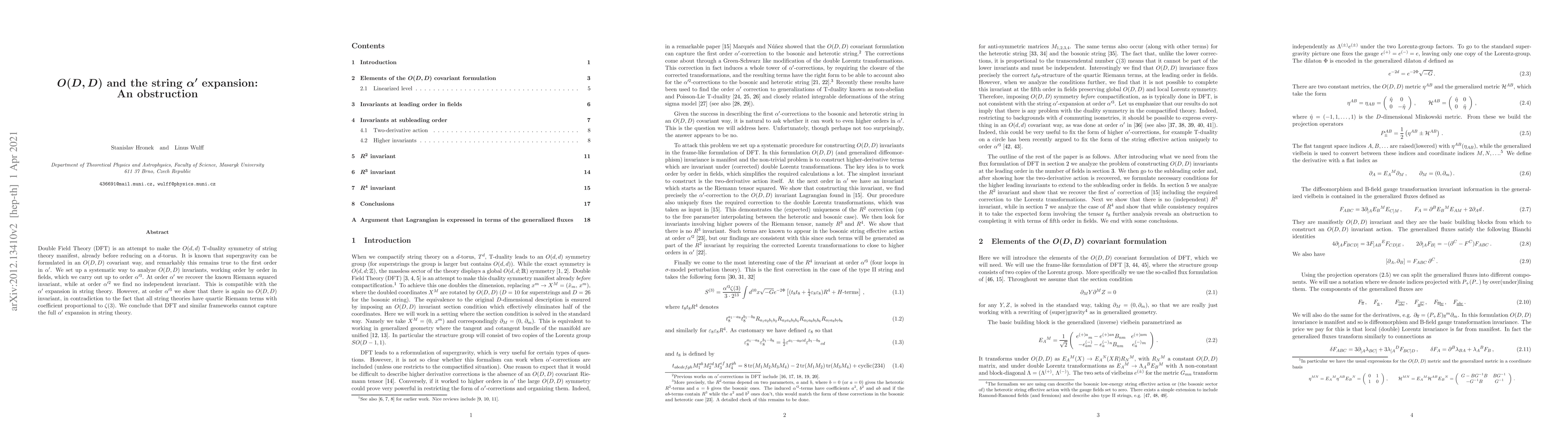 Double Field Theory (DFT) is an attempt to make the O(d,d) T-duality symmetry of string theory manifest, already before reducing on a d-torus. It is known that supergravity can be formulated in an O(D,D) covariant way, and remarkably this remains true to the first order in $\alpha'$. We set up a systematic way to analyze O(D,D) invariants, working order by order in fields, which we carry out up to order $\alpha'^3$. At order $\alpha'$ we recover the known Riemann squared invariant, while at order $\alpha'^2$ we find no independent invariant. This is compatible with the $\alpha'$ expansion in string theory. However, at order $\alpha'^3$ we show that there is again no O(D,D) invariant, in contradiction to the fact that all string theories have a quartic Riemann invariant with coefficient proportional to $\zeta(3)$. We conclude that DFT and similar frameworks cannot capture the full $\alpha'$ expansion in string theory.