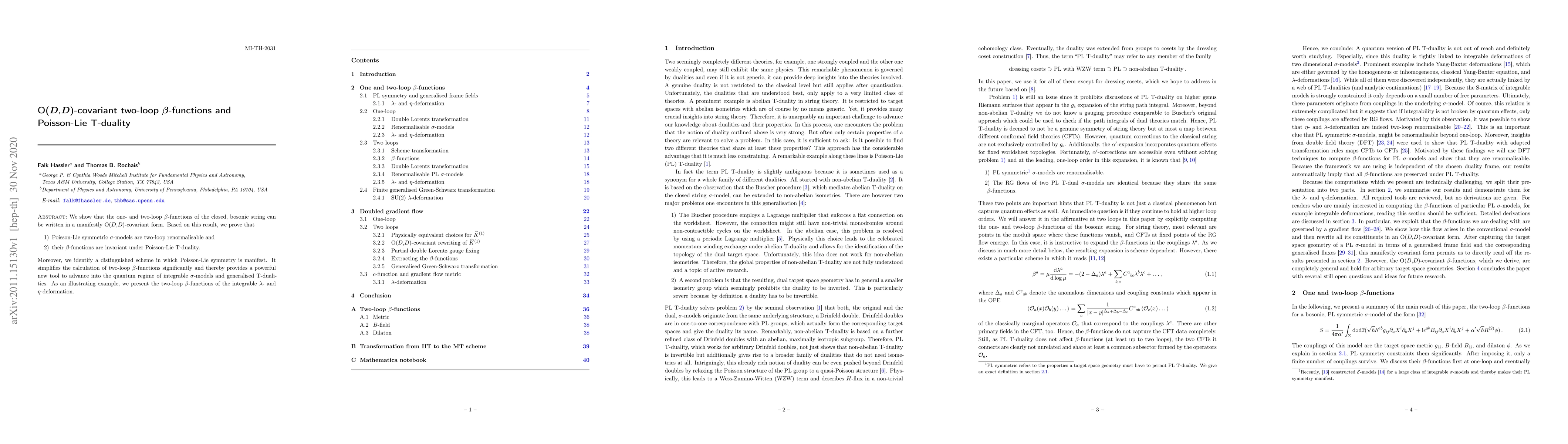 We show that the one- and two-loop $\beta$-functions of the closed, bosonic string can be written in a manifestly O($D$,$D$)-covariant form. Based on this result, we prove that 1) Poisson-Lie symmetric $\sigma$-models are two-loop renormalisable and 2) their $\beta$-functions are invariant under Poisson-Lie T-duality. Moreover, we identify a distinguished scheme in which Poisson-Lie symmetry is manifest. It simplifies the calculation of two-loop $\beta$-functions significantly and thereby provides a powerful new tool to advance into the quantum regime of integrable $\sigma$-models and generalised T-dualities. As an illustrating example, we present the two-loop $\beta$-functions of the integrable $\lambda$- and $\eta$-deformation.