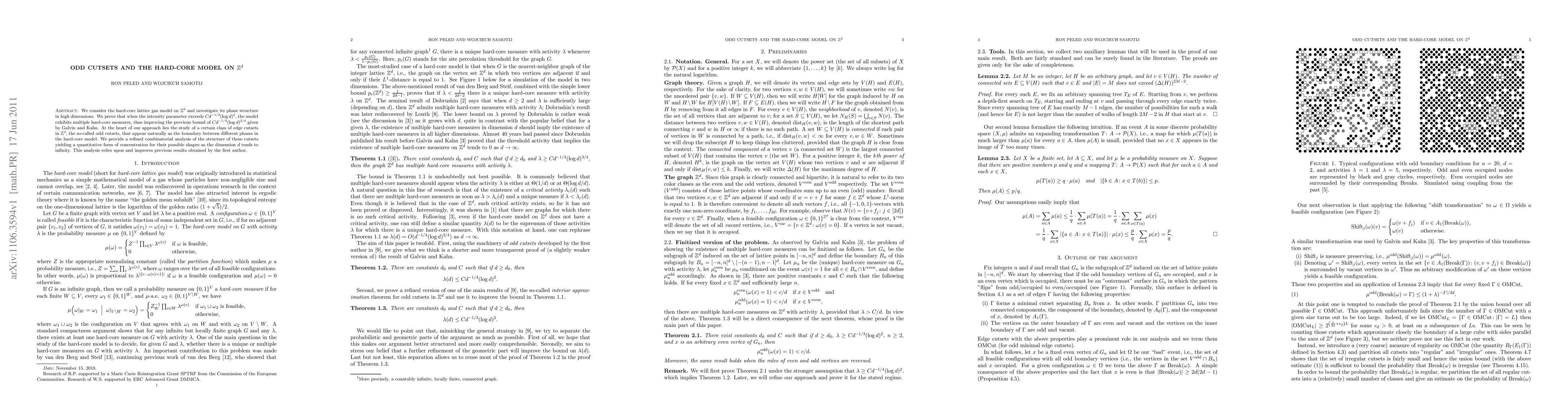 This paper explores the phase structure of the hard-core lattice gas model on Z^d, proving that above a certain intensity parameter, multiple hard-core measures emerge. The study focuses on odd cutsets, providing a refined combinatorial analysis that improves previous bounds and reveals concentration in their shapes as the dimension increases.