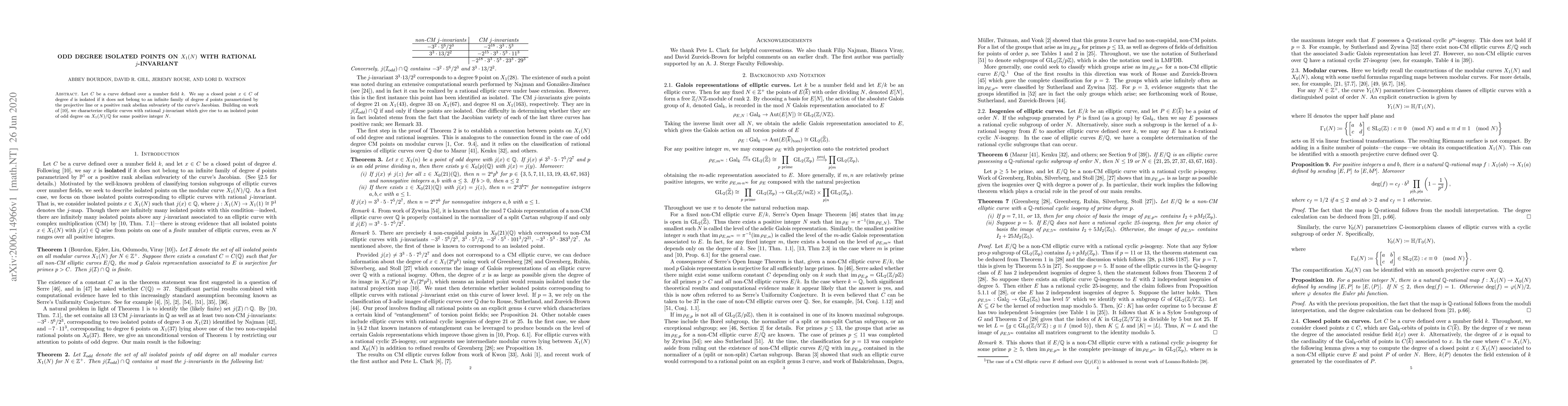 This paper characterizes elliptic curves with rational $j$-invariant that lead to isolated points of odd degree on $X_1(N)/\mathbb{Q}$. It builds on previous work to identify specific curves and their properties in this context.