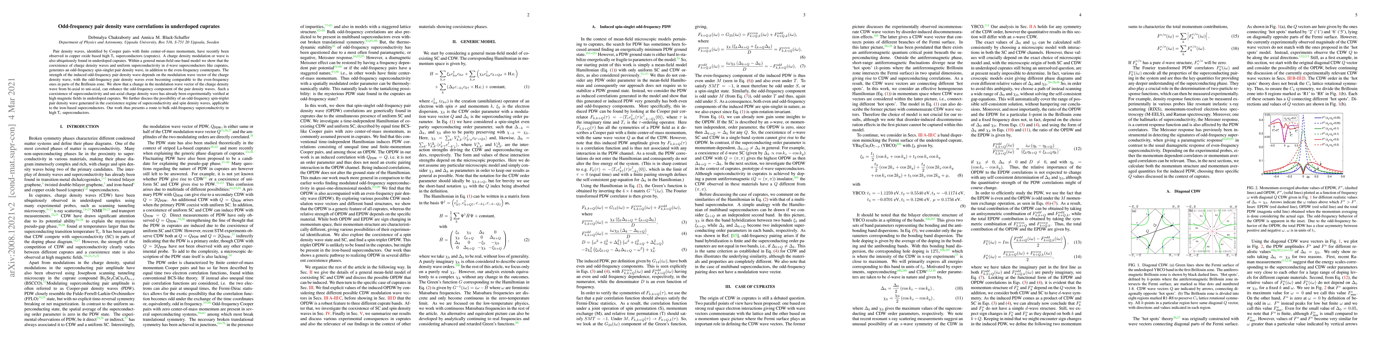 This paper demonstrates that underdoped cuprates exhibit odd-frequency pair density wave correlations arising from the coexistence of charge density waves and $d$-wave superconductivity, potentially leading to bulk odd-frequency superconductivity. The study also suggests that a uni-axial charge density wave can enhance these odd-frequency components, with implications for iron-based superconductors.