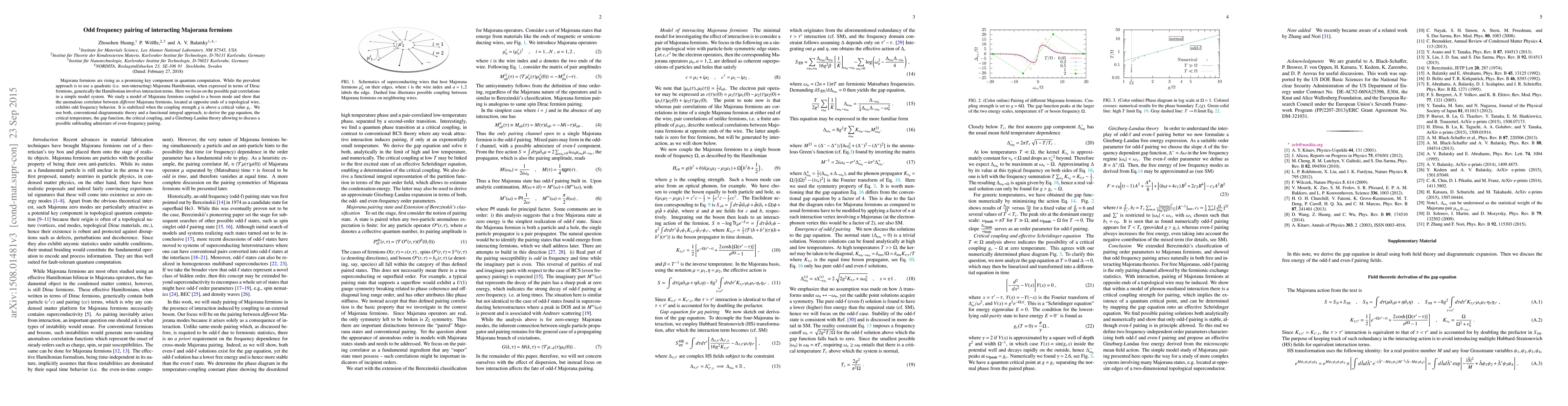 Majorana fermions are rising as a promising key component in quantum computation. While the prevalent approach is to use a quadratic (i.e. non-interacting) Majorana Hamiltonian, when expressed in terms of Dirac fermions, generically the Hamiltonian involves interaction terms. Here we focus on the possible pair correlations in a simple model system. We study a model of Majorana fermions coupled to a boson mode and show that the anomalous correlator between different Majorana fermions, located at opposite ends of a topological wire, exhibits odd frequency behavior. It is stabilized when the coupling strength $g$ is above a critical value $g_c$. We use both, conventional diagrammatic theory and a functional integral approach, to derive the gap equation, the critical temperature, the gap function, the critical coupling, and a Ginzburg-Landau theory allowing to discuss a possible subleading admixture of even-frequency pairing.