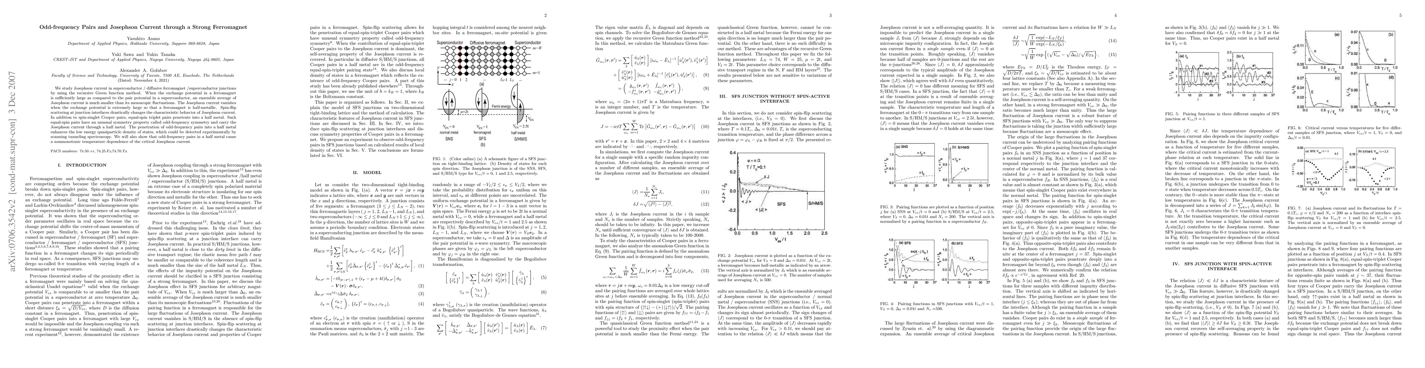 This paper investigates Josephson current through superconductor/ferromagnet/superconductor junctions, finding that strong ferromagnets with large exchange potentials allow odd-frequency spin-triplet pairs to penetrate, influencing the current and causing a nonmonotonic temperature dependence. Experimental detection via scanning tunneling spectroscopy is suggested.
