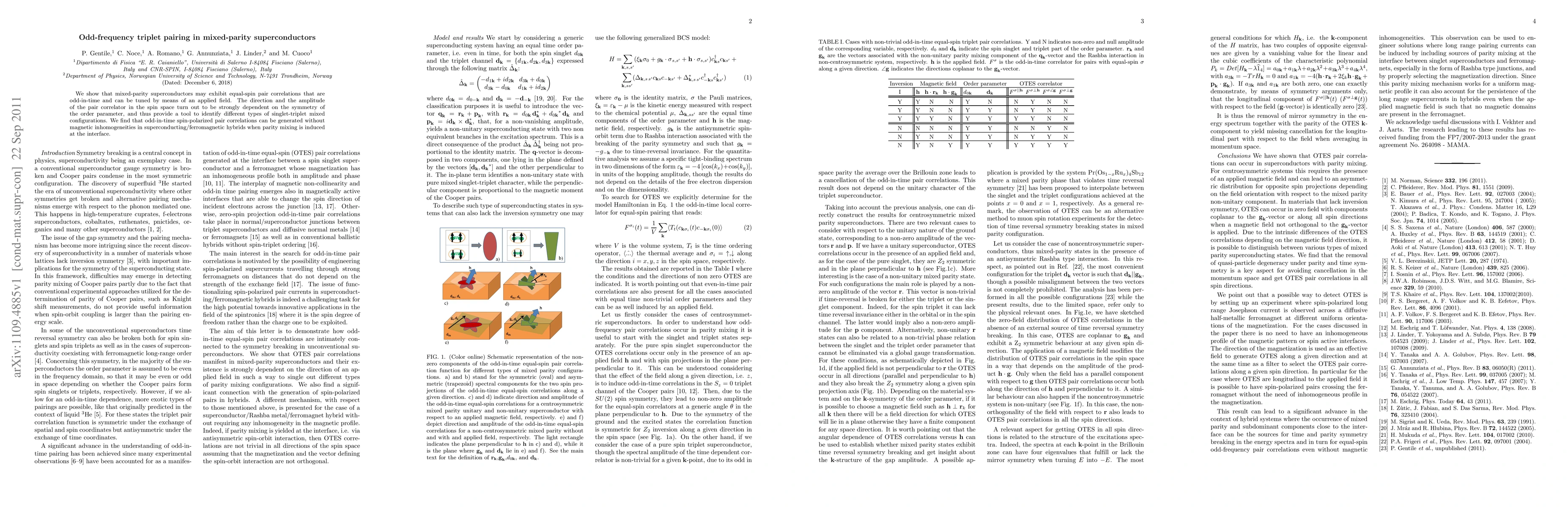 This paper reveals the existence of odd-frequency triplet pairing in mixed-parity superconductors, showing that these systems can exhibit spin-polarized pair correlations that can be controlled by external fields. The findings suggest a method to distinguish between different mixed singlet-triplet configurations through their spin-dependent pairing properties.