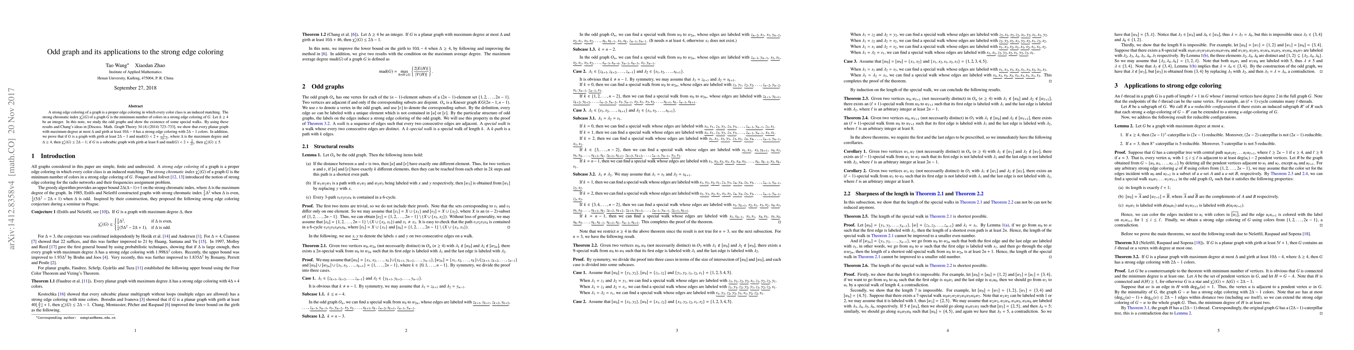 This research demonstrates that planar graphs with maximum degree at most u221aDelta and girth at least 10u221aDelta - 4 can be strongly edge-colored using 2u221aDelta - 1 colors. It also proves that subcubic graphs with girth at least 8 and matching number (mad) less than 2 + 2/(23u221aDelta - 2) have a strong chromatic index u221aDelta - 1. These findings leverage special walks in odd graphs and build upon previous work by Chang.