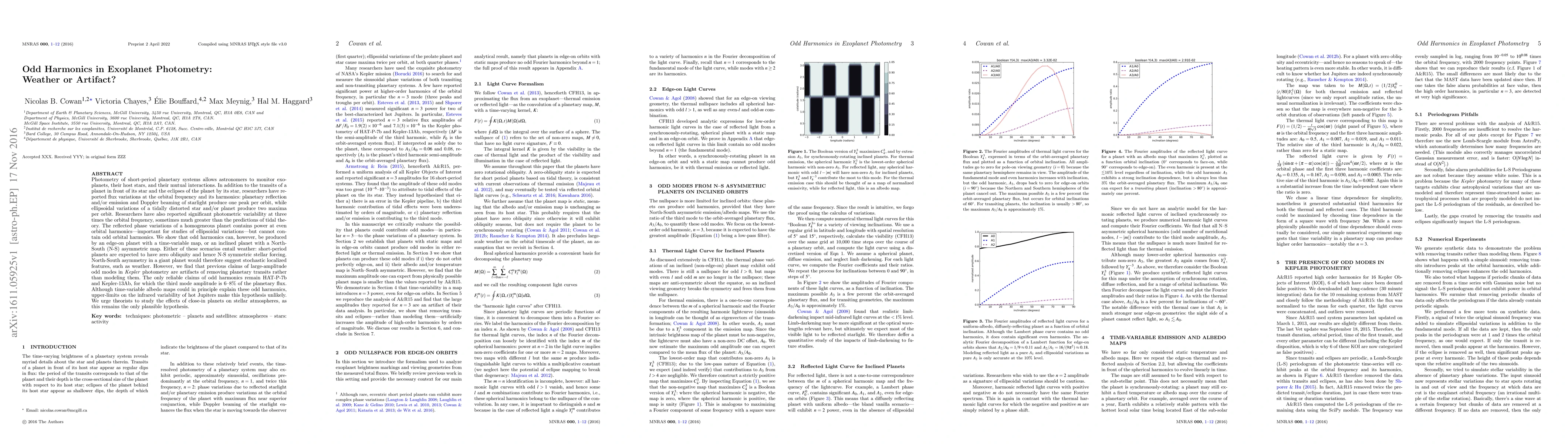 Researchers investigate whether odd harmonics in exoplanet photometry are caused by weather or stellar artifacts, finding that most claims of large-amplitude odd modes are likely artifacts of removing planetary transits.