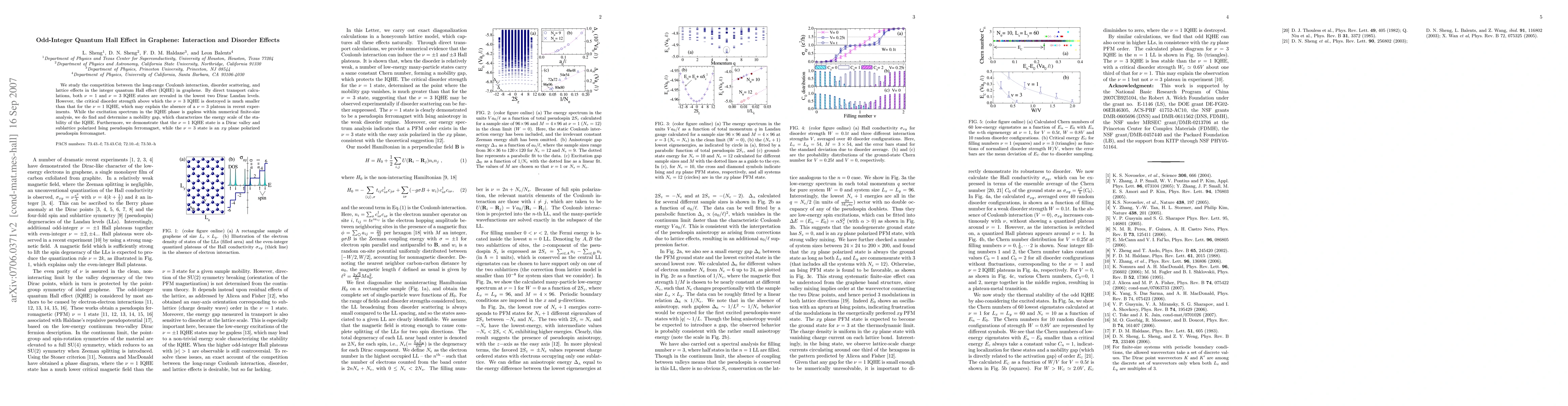 We study the competition between the long-range Coulomb interaction, disorder scattering, and lattice effects in the integer quantum Hall effect (IQHE) in graphene. By direct transport calculations, both $\nu=1$ and $\nu=3$ IQHE states are revealed in the lowest two Dirac Landau levels. However, the critical disorder strength above which the $\nu=3$ IQHE is destroyed is much smaller than that for the $\nu=1$ IQHE, which may explain the absence of a $\nu=3$ plateau in recent experiments. While the excitation spectrum in the IQHE phase is gapless within numerical finite-size analysis, we do find and determine a mobility gap, which characterizes the energy scale of the stability of the IQHE. Furthermore, we demonstrate that the $\nu=1$ IQHE state is a Dirac valley and sublattice polarized Ising pseudospin ferromagnet, while the $\nu=3$ state is an $xy$ plane polarized pseudospin ferromagnet.