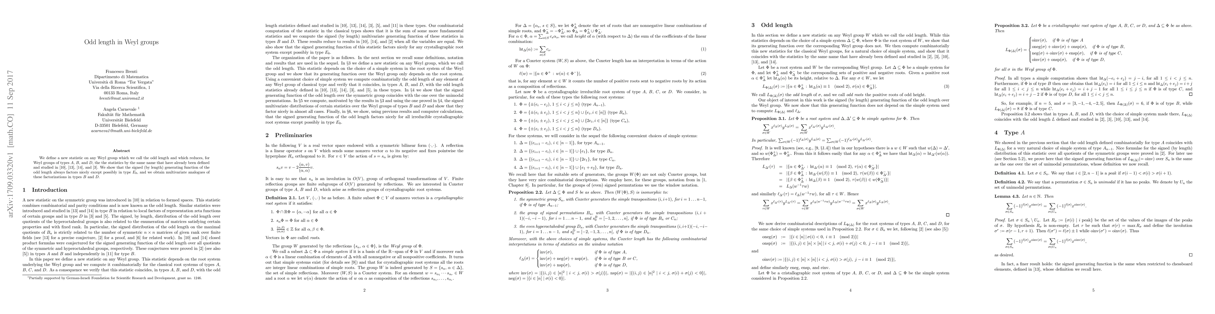 Researchers introduce a new statistic called odd length for Weyl groups, which simplifies existing statistics for types A, B, and D. The generating function of this new statistic factors nicely in most cases, with exceptions only in type E8.