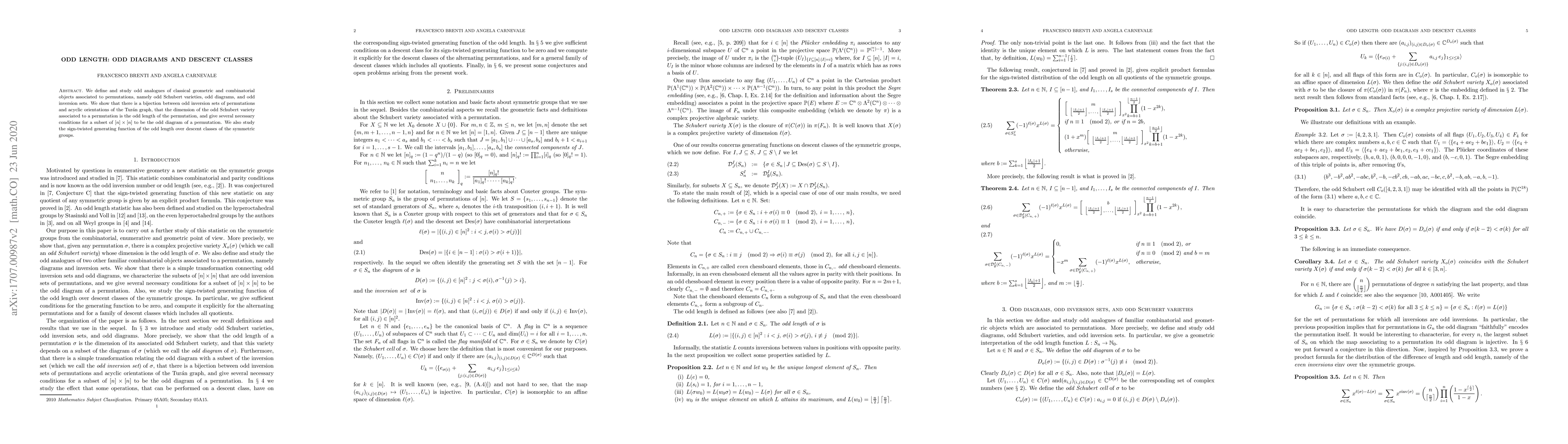 This paper studies odd analogues of classical geometric and combinatorial objects associated with permutations, establishing a bijection between odd inversion sets and acyclic orientations of the Turan graph and finding necessary conditions for an odd diagram to exist.
