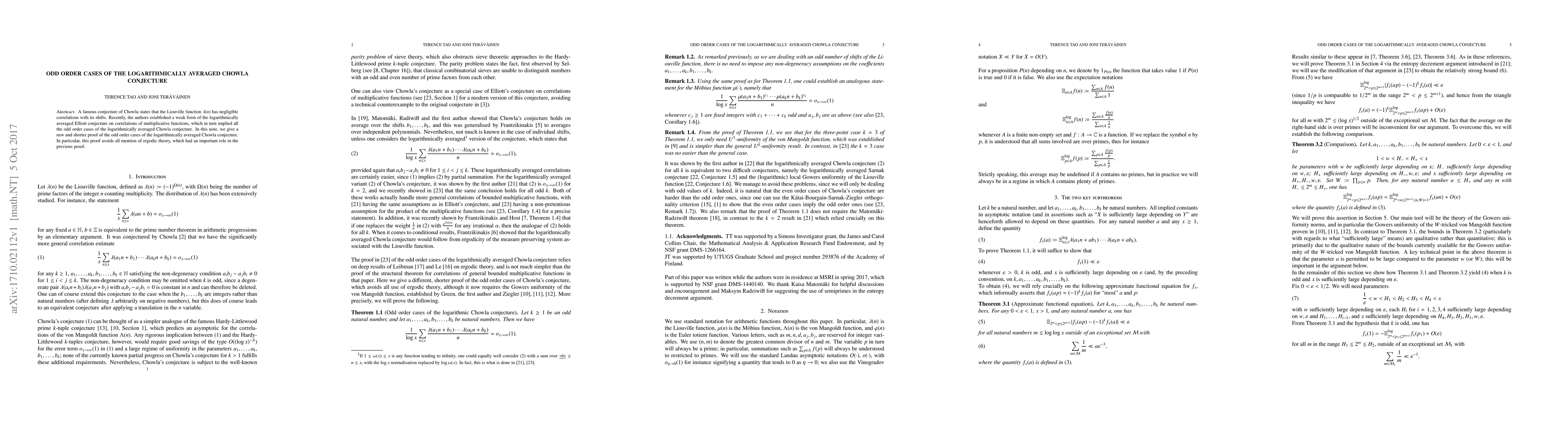 A famous conjecture of Chowla states that the Liouville function $\lambda(n)$ has negligible correlations with its shifts. Recently, the authors established a weak form of the logarithmically averaged Elliott conjecture on correlations of multiplicative functions, which in turn implied all the odd order cases of the logarithmically averaged Chowla conjecture. In this note, we give a new and shorter proof of the odd order cases of the logarithmically averaged Chowla conjecture. In particular, this proof avoids all mention of ergodic theory, which had an important role in the previous proof.