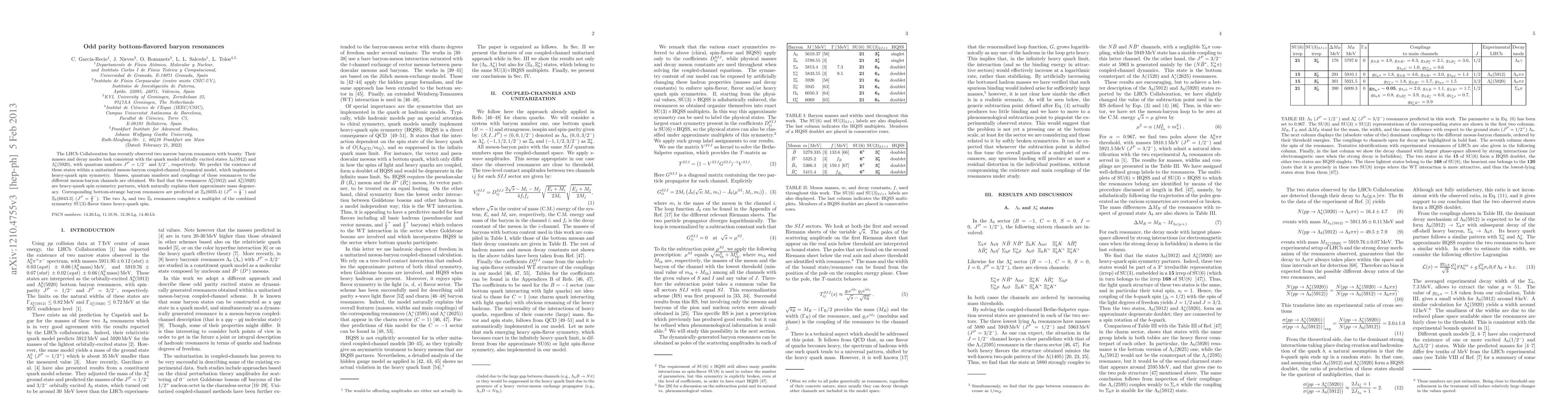 The LHCb Collaboration has identified two narrow bottom-flavored baryon resonances, Lambda_b(5912) and Lambda*_b(5920), consistent with orbitally excited states. A unitarized meson-baryon model predicts these states and their symmetry partners, explaining their mass degeneracy and predicting corresponding bottom-strange baryon resonances.