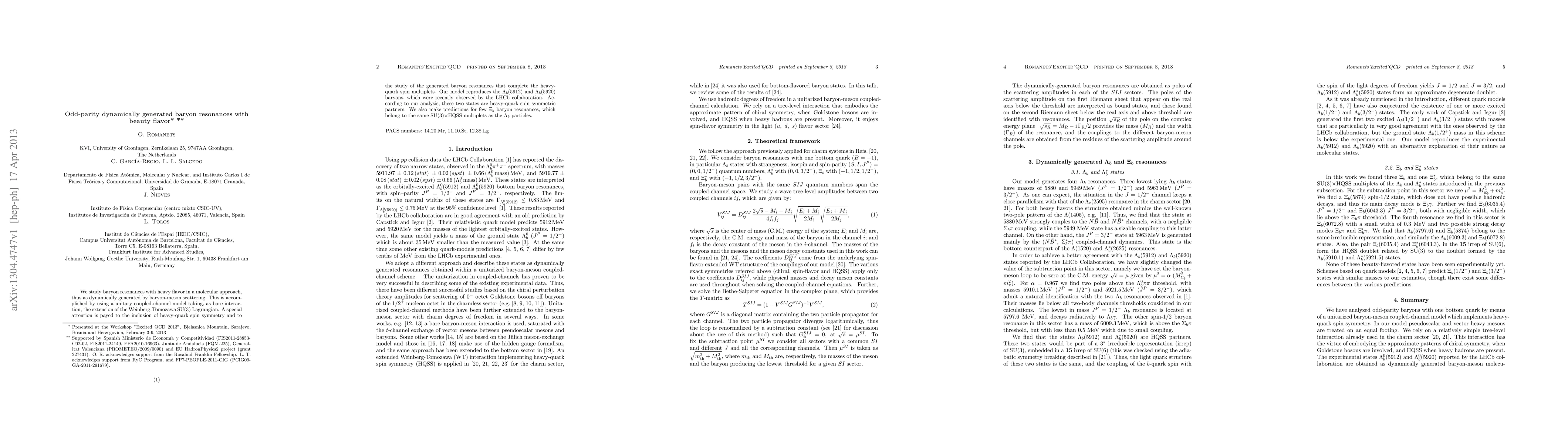 We study baryon resonances with heavy flavor in a molecular approach, thus as dynamically generated by baryon-meson scattering. This is accomplished by using a unitary coupled-channel model taking, as bare interaction, the extension of the Weinberg-Tomozawa SU(3) Lagrangian. A special attention is payed to the inclusion of heavy-quark spin symmetry and to the study of the generated baryon resonances that complete the heavy-quark spin multiplets. Our model reproduces the \Lambda_b(5912) and \Lambda_b(5920) baryons, which were recently observed by the LHCb collaboration. According to our analysis, these two states are heavy-quark spin symmetric partners. We also make predictions for few \Xi_b baryon resonances, which belong to the same SU(3)xHQSS multiplets as the \Lambda_b particles.