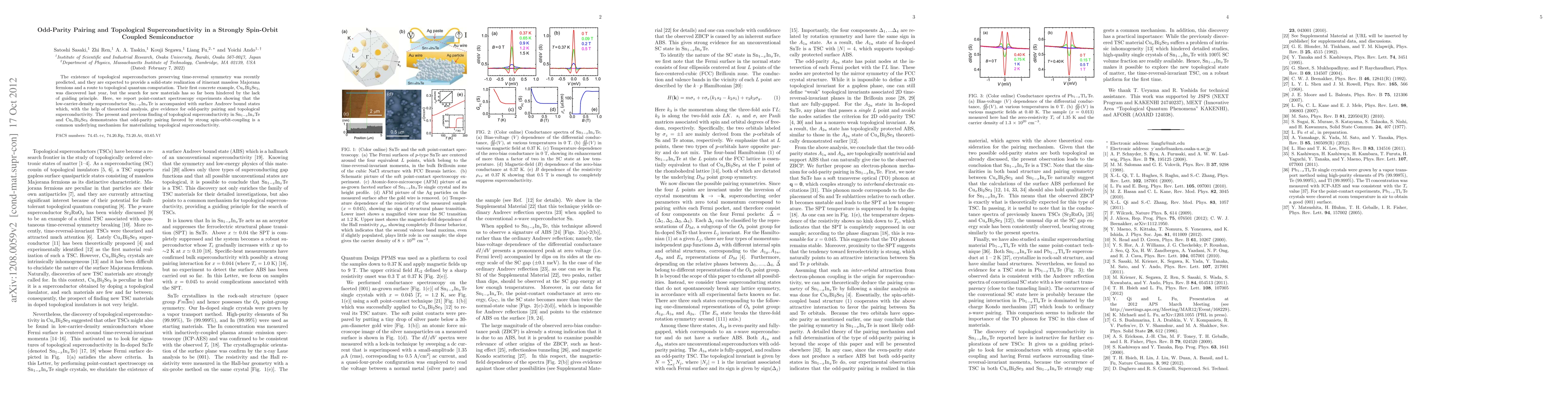 This paper reports experimental evidence for topological superconductivity in the low-carrier-density superconductor Sn_{1-x}In_{x}Te, revealing surface Andreev bound states indicative of odd-parity pairing. The findings suggest that strong spin-orbit coupling is a key mechanism for realizing topological superconductivity, as seen in both Sn_{1-x}In_{x}Te and CuxBi2Se3.