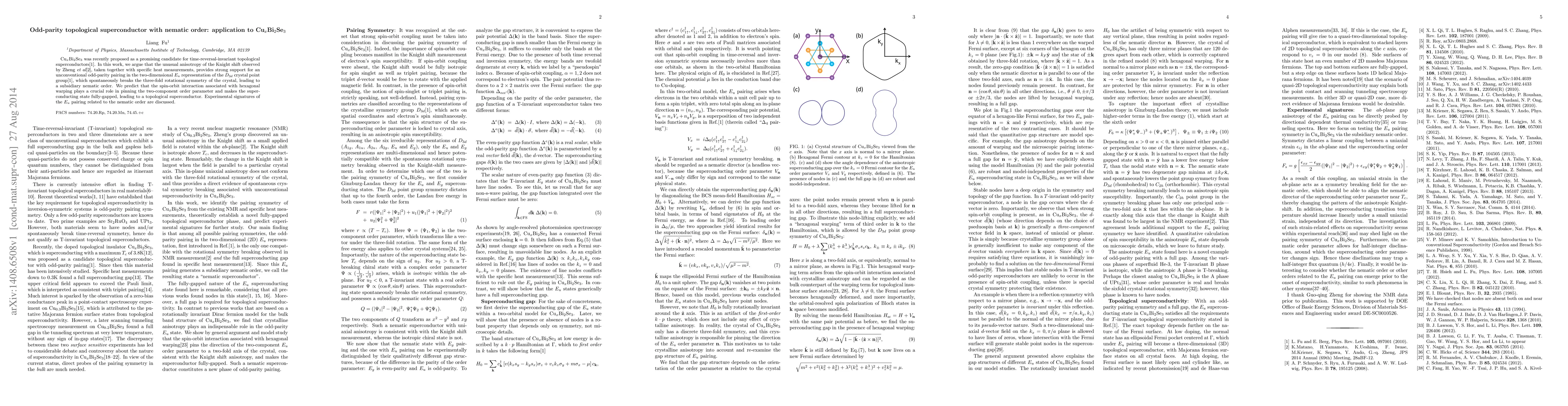 Researchers propose CuxBi2Se3 as a topological superconductor with an odd-parity pairing due to nematic order, supported by Knight shift measurements and specific heat data. The spin-orbit interaction is crucial in pinning the two-component order parameter, leading to a fully-gapped superconducting state.