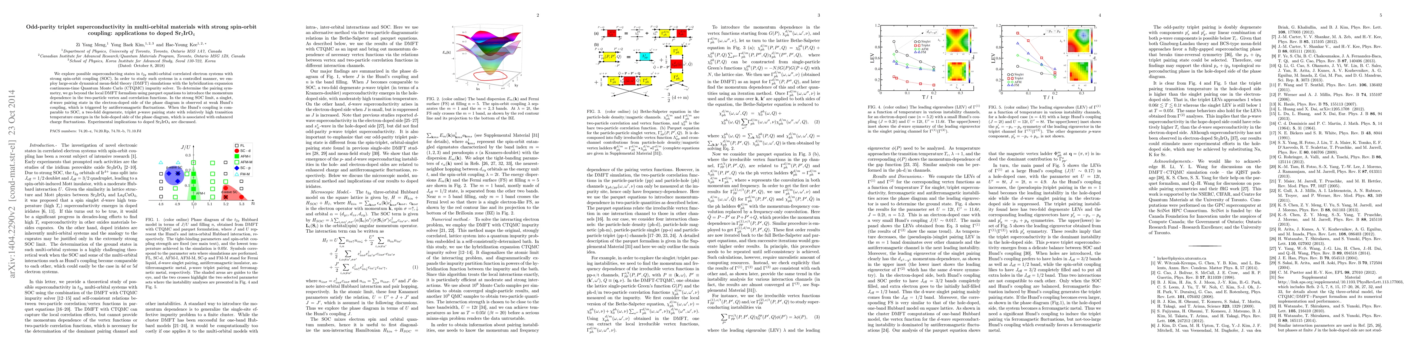 We explore possible superconducting states in $t_{2g}$ multi-orbital correlated electron systems with strong spin-orbit coupling (SOC). In order to study such systems in a controlled manner, we employ large-scale dynamical mean-field theory (DMFT) simulations with the hybridization expansion continuous-time Quantum Monte Carlo (CTQMC) impurity solver. To determine the pairing symmetry, we go beyond the local DMFT formalism using parquet equations to introduce the momentum dependence in the two-particle vertex and correlation functions. In the strong SOC limit, a singlet, $d$-wave pairing state in the electron-doped side of the phase diagram is observed at weak Hund's coupling, which is triggered by antiferromagnetic fluctuations. When the Hund's coupling is comparable to SOC, a two-fold degenerate, triplet $p$-wave pairing state with relatively high $T_c$ emerges in the hole-doped side of the phase diagram, which is associated with enhanced charge fluctuations. Experimental implications to doped Sr$_{2}$IrO$_{4}$ are discussed.