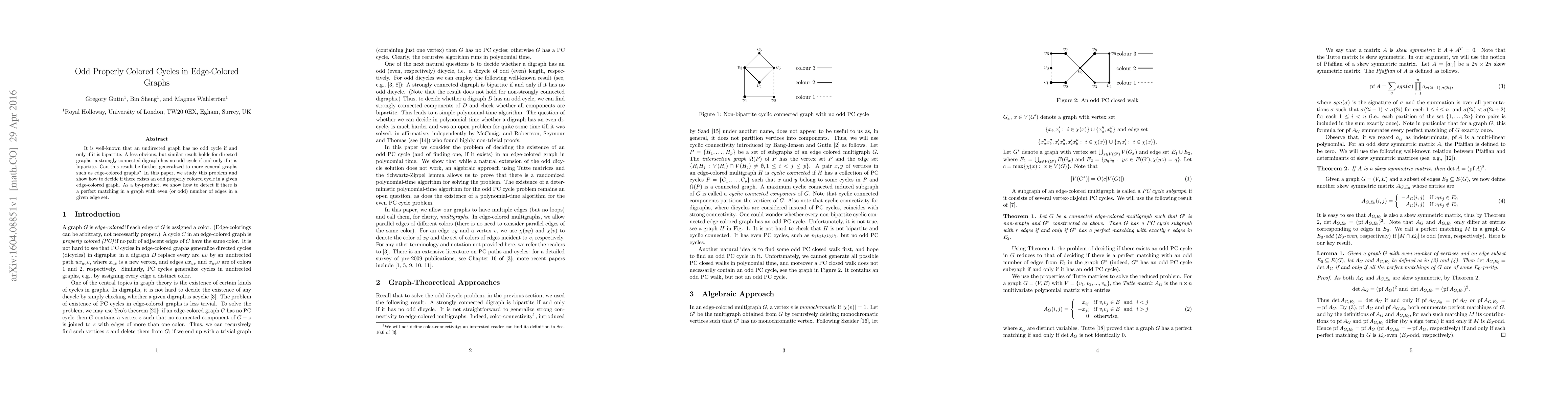 This paper investigates the generalization of bipartite graph properties to edge-colored graphs, determining the existence of odd properly colored cycles. It also presents a method for detecting perfect matchings in graphs with even or odd edge sets.