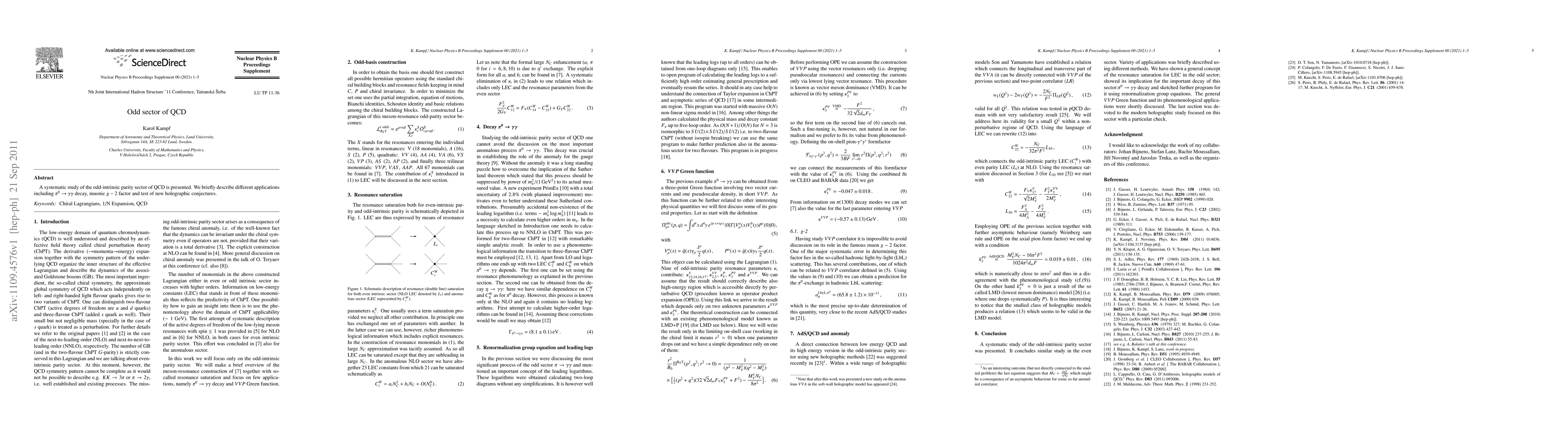 Summary: This paper systematically investigates the odd-intrinsic parity sector of Quantum Chromodynamics (QCD), exploring its applications in processes like pi0 decay, muonic (g-2) factor, and testing new holographic conjectures. The study highlights the sector's implications for various physical phenomena.