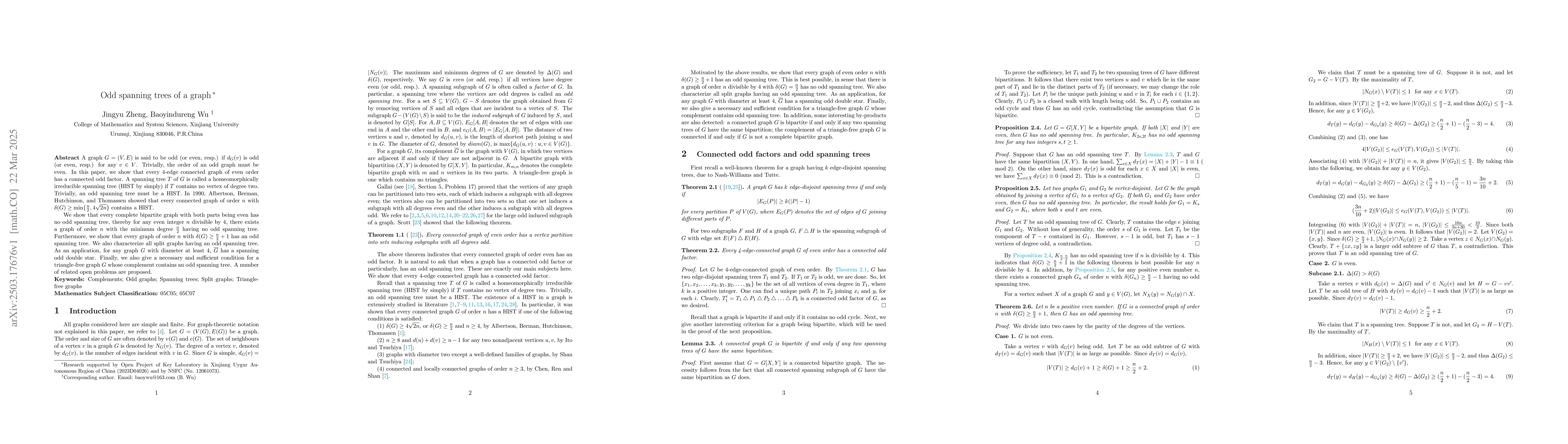 The paper presents new conditions and characterizations for the existence of odd spanning trees in graphs, advancing the theoretical framework in graph theory.