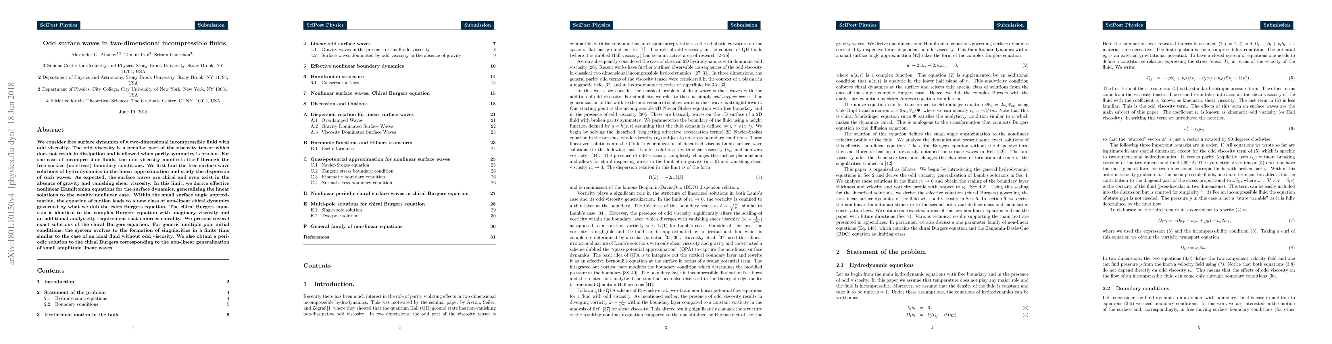 This paper explores the dynamics of odd viscosity in two-dimensional incompressible fluids, focusing on the resulting chiral surface waves. It develops a nonlinear Hamiltonian framework and introduces the chiral Burgers equation, presenting exact solutions and discussing finite-time singularity formation akin to ideal fluid dynamics.