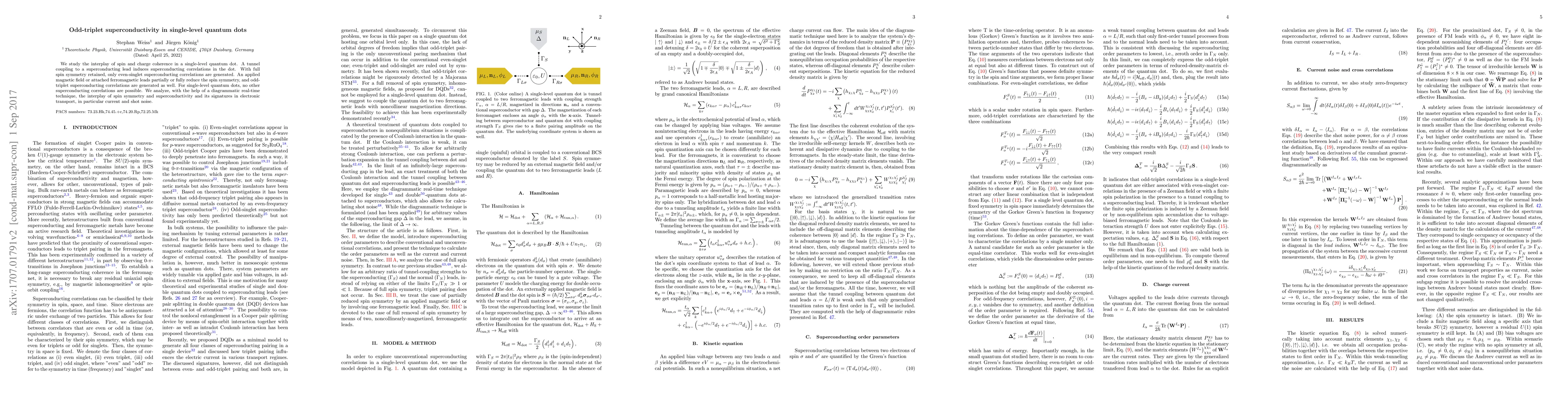 We study the interplay of spin and charge coherence in a single-level quantum dot. A tunnel coupling to a superconducting lead induces superconducting correlations in the dot. With full spin symmetry retained, only even-singlet superconducting correlations are generated. An applied magnetic field or attached ferromagnetic leads partially or fully reduce the spin symmetry, and odd-triplet superconducting correlations are generated as well. For single-level quantum dots, no other superconducting correlations are possible. We analyze, with the help of a diagrammatic real-time technique, the interplay of spin symmetry and superconductivity and its signatures in electronic transport, in particular current and shot noise.