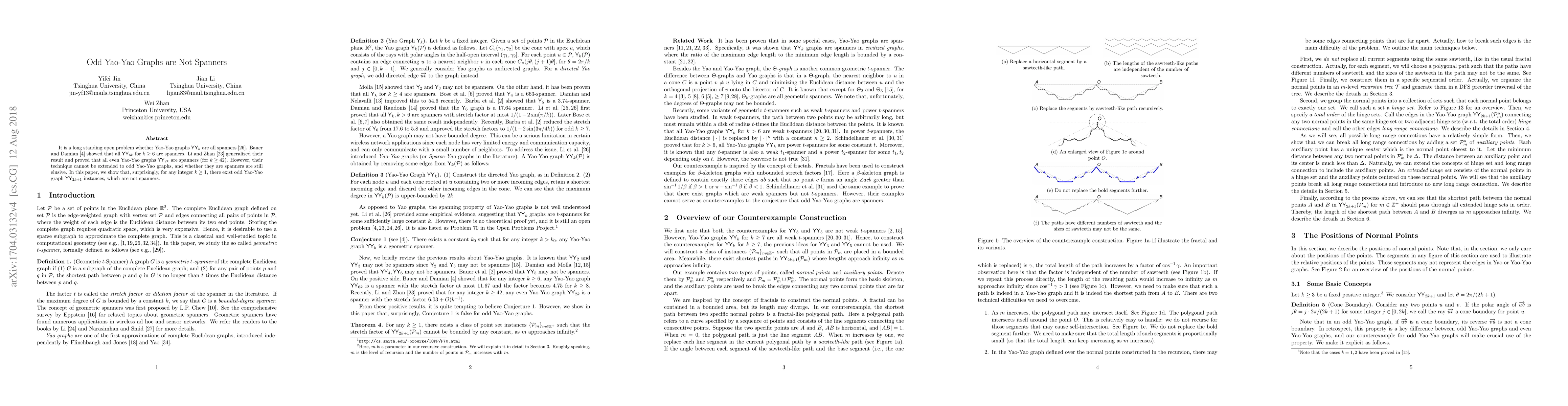 It is a long standing open problem whether Yao-Yao graphs $\mathsf{YY}_{k}$ are all spanners [li2002sparse]. Bauer and Damian [bauer2013infinite] showed that all $\mathsf{YY}_{6k}$ for $k \geq 6$ are spanners. Li and Zhan [li2016almost] generalized their result and proved that all even Yao-Yao graphs $\mathsf{YY}_{2k}$ are spanners (for $k\geq 42$). However, their technique cannot be extended to odd Yao-Yao graphs, and whether they are spanners are still elusive. In this paper, we show that, surprisingly, for any integer $k \geq 1$, there exist odd Yao-Yao graph $\mathsf{YY}_{2k+1}$ instances, which are not spanners.