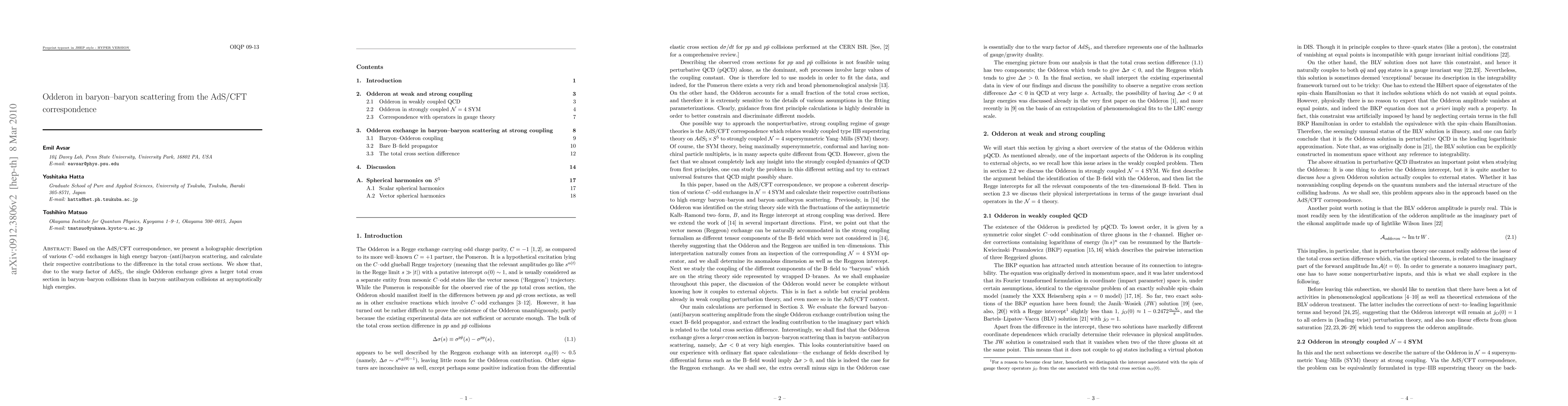 Based on the AdS/CFT correspondence, we present a holographic description of various C-odd exchanges in high energy baryon-baryon and baryon-antibaryon scattering, and calculate their respective contributions to the difference in the total cross sections. We predict that, due to the warp factor of AdS_5, the total cross section in pp collisions is larger than in p\bar{p} collisions at asymptotically high energies.