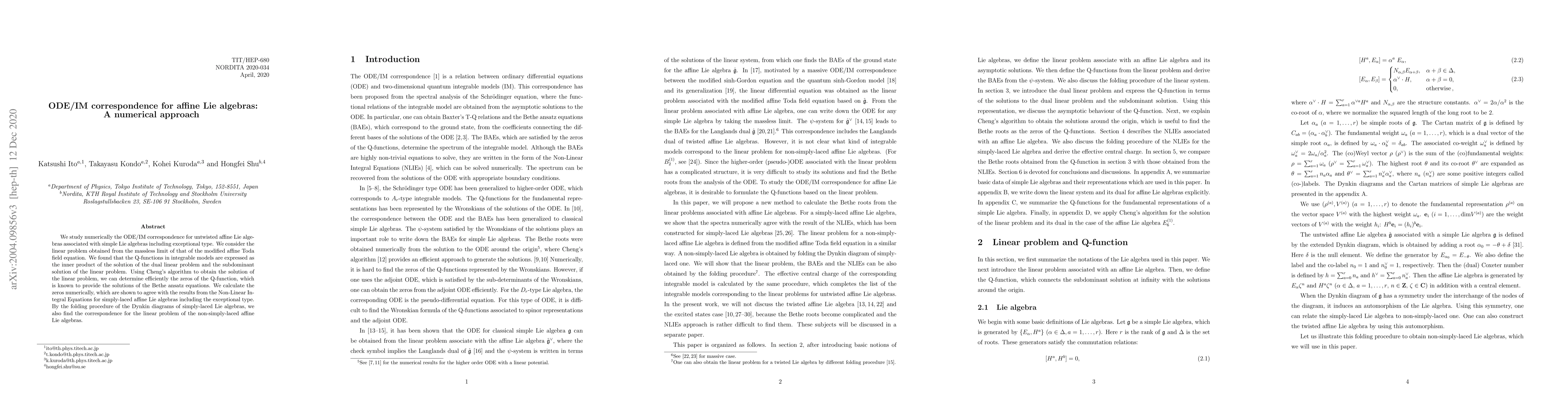This paper numerically investigates the ODE/IM correspondence for untwisted affine Lie algebras, revealing that Q-functions in integrable models relate to solutions of a linear problem derived from the modified affine Toda field equation. The study confirms the correspondence's validity for simply-laced algebras and extends it to non-simply-laced ones via Dynkin diagram folding.