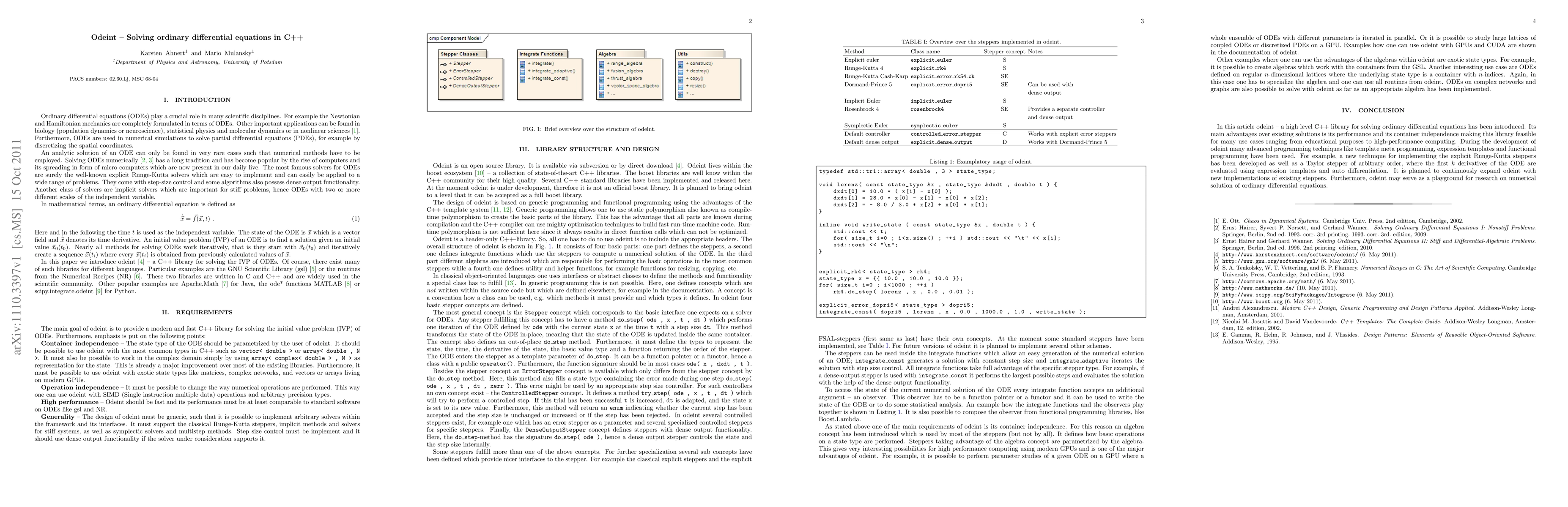 The paper introduces Odeint, a C++ library for solving initial value problems of ordinary differential equations (ODEs), emphasizing container independence, operation independence, high performance, generality, and a modular design for easy parallelization with OpenMP and CUDA GPUs.