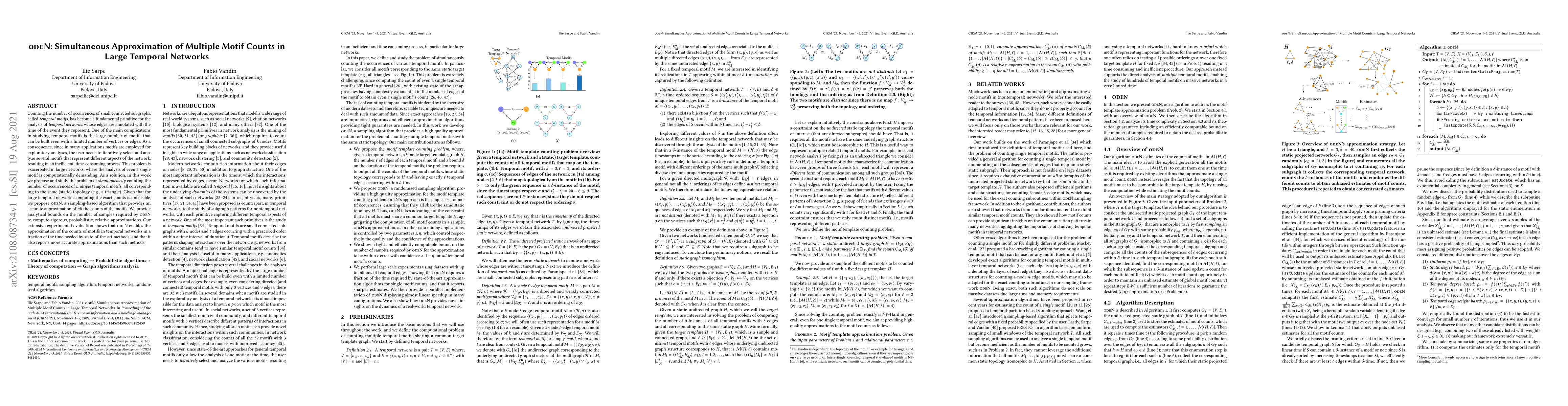 Counting the number of occurrences of small connected subgraphs, called temporal motifs, has become a fundamental primitive for the analysis of temporal networks, whose edges are annotated with the time of the event they represent. One of the main complications in studying temporal motifs is the large number of motifs that can be built even with a limited number of vertices or edges. As a consequence, since in many applications motifs are employed for exploratory analyses, the user needs to iteratively select and analyze several motifs that represent different aspects of the network, resulting in an inefficient, time-consuming process. This problem is exacerbated in large networks, where the analysis of even a single motif is computationally demanding. As a solution, in this work we propose and study the problem of simultaneously counting the number of occurrences of multiple temporal motifs, all corresponding to the same (static) topology (e.g., a triangle). Given that for large temporal networks computing the exact counts is unfeasible, we propose odeN, a sampling-based algorithm that provides an accurate approximation of all the counts of the motifs. We provide analytical bounds on the number of samples required by odeN to compute rigorous, probabilistic, relative approximations. Our extensive experimental evaluation shows that odeN enables the approximation of the counts of motifs in temporal networks in a fraction of the time needed by state-of-the-art methods, and that it also reports more accurate approximations than such methods.