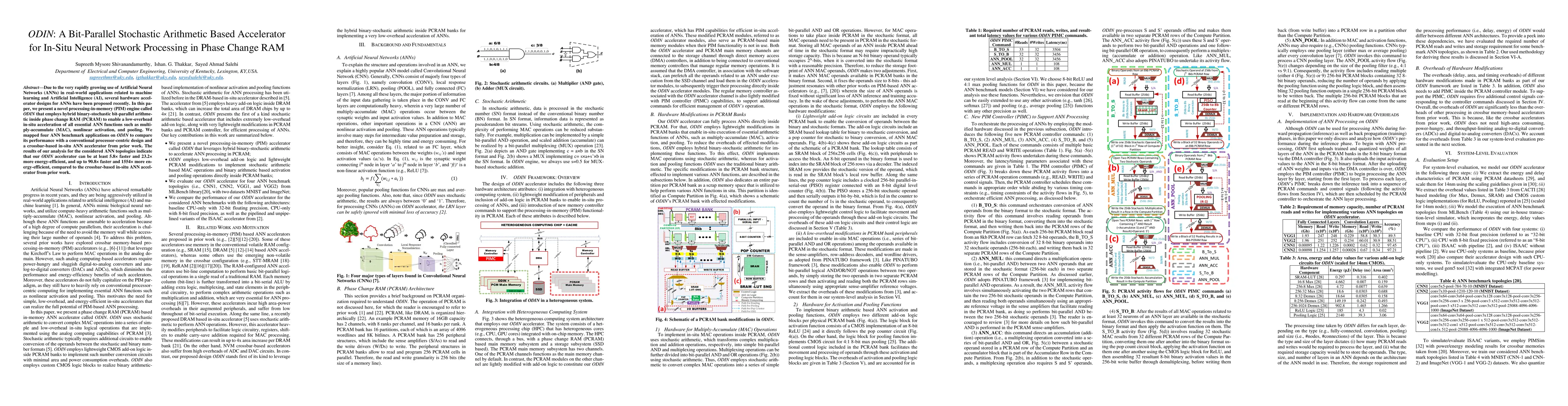 ODIN is a novel bit-parallel stochastic arithmetic accelerator for in-situ neural network processing in phase change RAM, achieving significant speedups and energy efficiencies over conventional and prior crossbar-based designs. The ODIN engine demonstrates up to 90.8x faster and 1554x more energy-efficient performance for various ANN functions.