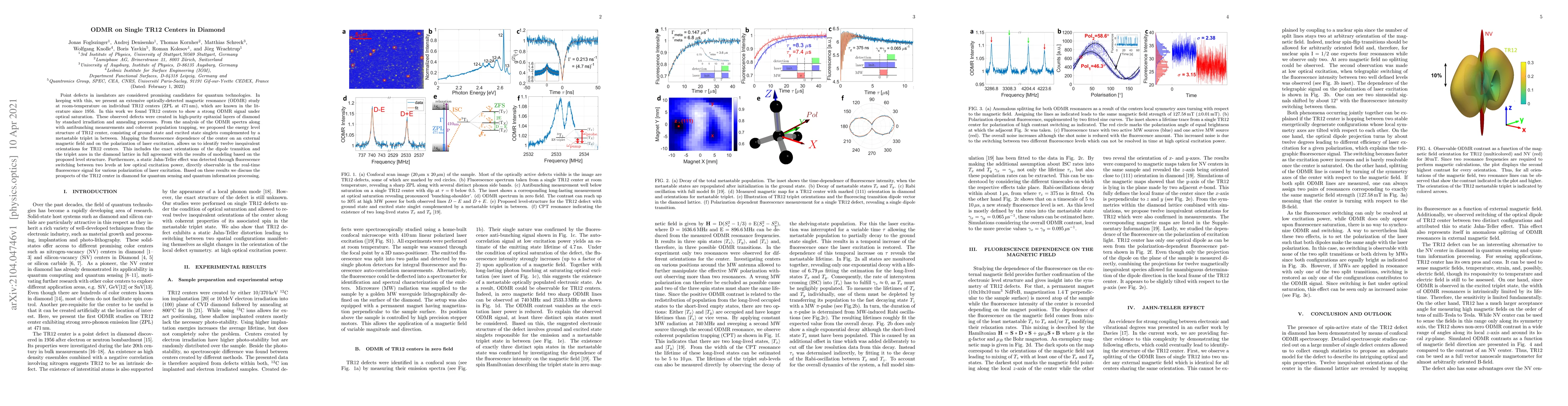 This paper presents an extensive study of optically-detected magnetic resonance (ODMR) on individual TR12 centers in diamond, revealing a strong ODMR signal and proposing an energy level structure including ground and excited singlets and a metastable triplet. The study identifies twelve inequivalent orientations and discusses the TR12 center's potential for quantum sensing and information processing.