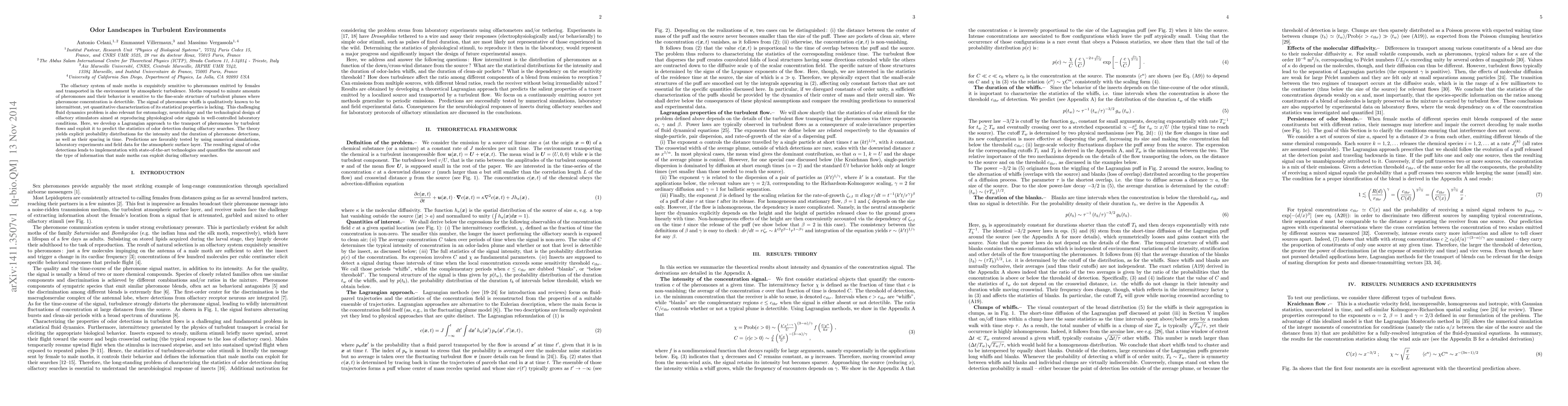 This research presents a Lagrangian approach to predict pheromone detection statistics in turbulent flows, crucial for understanding moth olfactory behavior. It provides probability distributions for pheromone intensity, duration, and time spacing, validated by simulations, experiments, and field data, with implications for entomology, neurobiology, and olfactory stimulator design.