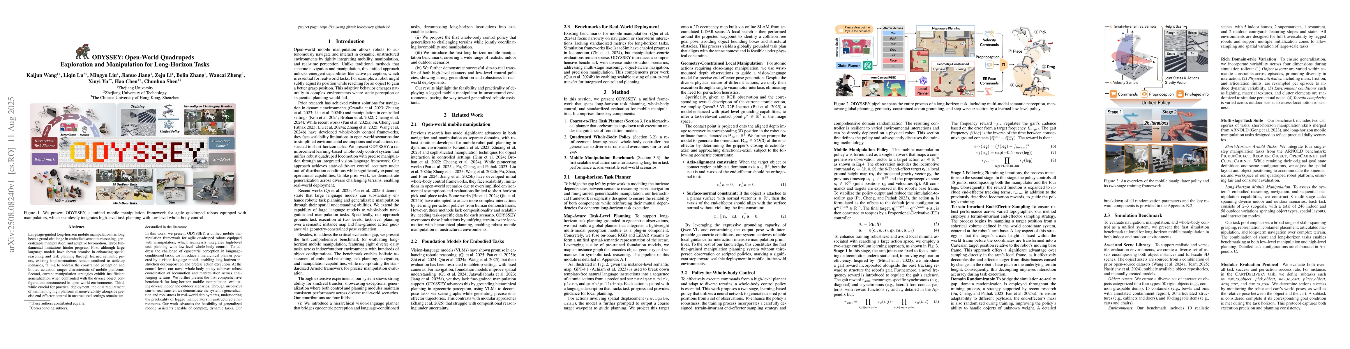 The research introduces ODYSSEY, a unified mobile manipulation framework for agile quadruped robots equipped with manipulators. It integrates high-level task planning with low-level whole-body control, addressing challenges in egocentric perception, generalization in open-world environments, and the dual requirements of maneuverability and precise end-effector control.