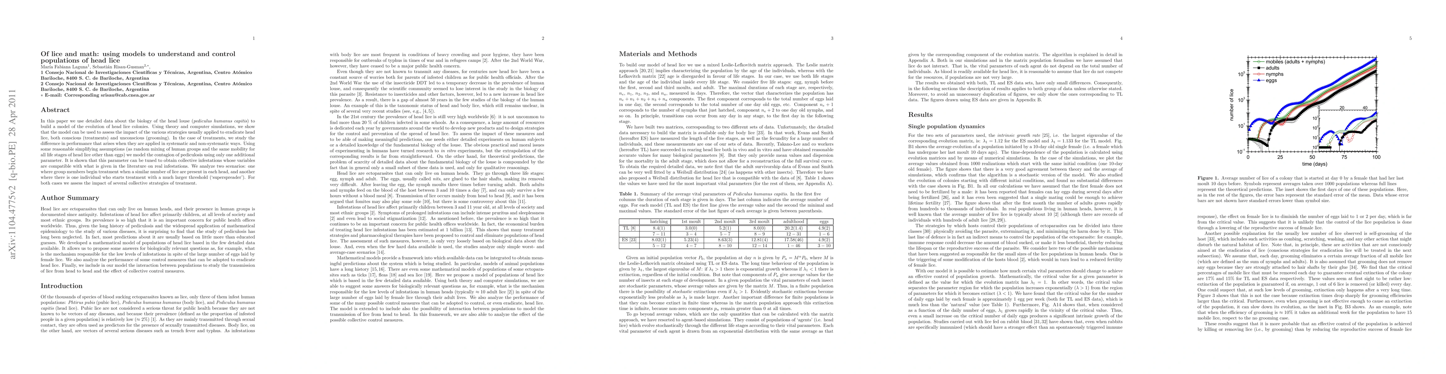 In this paper we use detailed data about the biology of the head louse (pediculus humanus capitis) to build a model of the evolution of head lice colonies. Using theory and computer simulations, we show that the model can be used to assess the impact of the various strategies usually applied to eradicate head lice, both conscious (treatments) and unconscious (grooming). In the case of treatments, we study the difference in performance that arises when they are applied in systematic and non-systematic ways. Using some reasonable simplifying assumptions (as random mixing of human groups and the same mobility for all life stages of head lice other than eggs) we model the contagion of pediculosis using only one additional parameter. It is shown that this parameter can be tuned to obtain collective infestations whose variables are compatible with what is given in the literature on real infestations. We analyze two scenarios: one where group members begin treatment when a similar number of lice are present in each head, and another where there is one individual who starts treatment with a much larger threshold ('superspreader'). For both cases we assess the impact of several collective strategies of treatment.