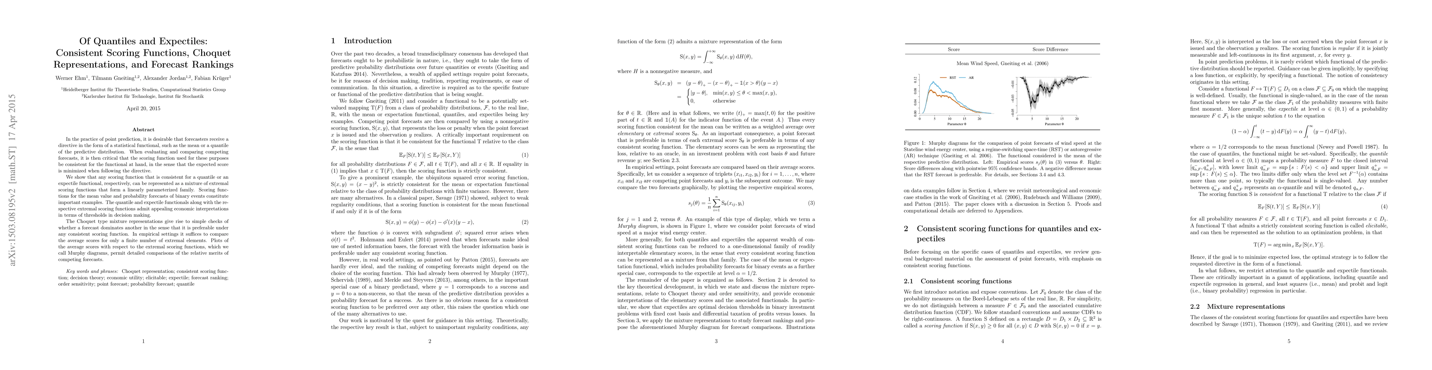 This paper explores consistent scoring functions for quantiles and expectiles in point prediction, showing they can be represented as mixtures of extremal scoring functions. It introduces Choquet representations and "Murphy diagrams" for evaluating and comparing forecasts, providing a simple method for determining forecast dominance.