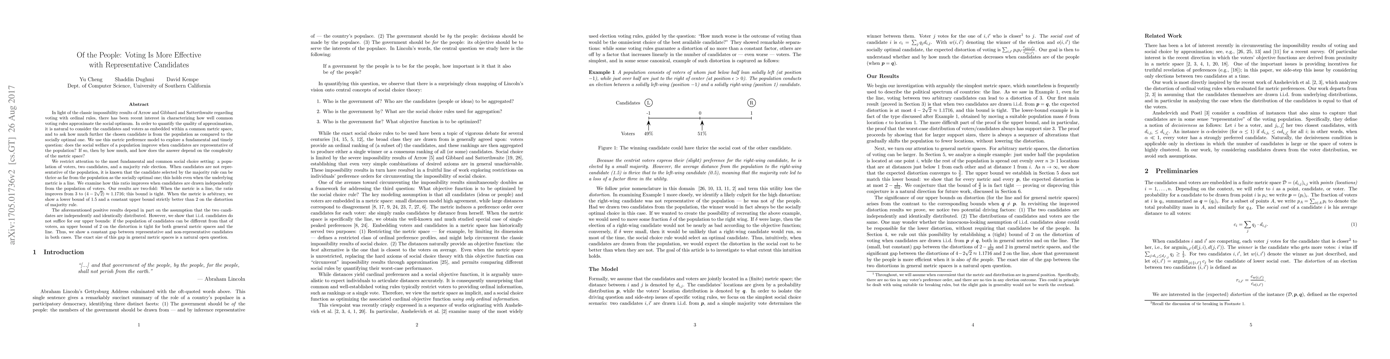 In light of the classic impossibility results of Arrow and Gibbard and Satterthwaite regarding voting with ordinal rules, there has been recent interest in characterizing how well common voting rules approximate the social optimum. In order to quantify the quality of approximation, it is natural to consider the candidates and voters as embedded within a common metric space, and to ask how much further the chosen candidate is from the population as compared to the socially optimal one. We use this metric preference model to explore a fundamental and timely question: does the social welfare of a population improve when candidates are representative of the population? If so, then by how much, and how does the answer depend on the complexity of the metric space? We restrict attention to the most fundamental and common social choice setting: a population of voters, two independently drawn candidates, and a majority rule election. When candidates are not representative of the population, it is known that the candidate selected by the majority rule can be thrice as far from the population as the socially optimal one. We examine how this ratio improves when candidates are drawn independently from the population of voters. Our results are two-fold: When the metric is a line, the ratio improves from $3$ to $4-2\sqrt{2}$, roughly $1.1716$; this bound is tight. When the metric is arbitrary, we show a lower bound of $1.5$ and a constant upper bound strictly better than $2$ on the approximation ratio of the majority rule. The positive result depends in part on the assumption that candidates are independent and identically distributed. However, we show that independence alone is not enough to achieve the upper bound: even when candidates are drawn independently, if the population of candidates can be different from the voters, then an upper bound of $2$ on the approximation is tight.