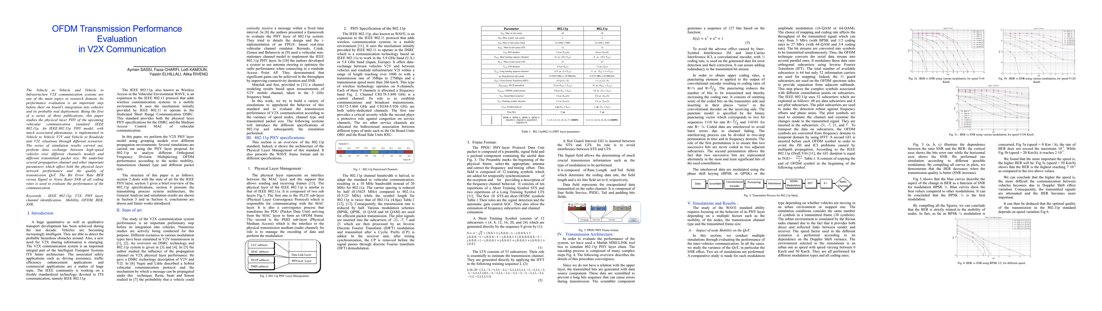 This paper evaluates the physical layer performance of IEEE 802.11p for V2X communication through simulations, analyzing BER versus SNR under various channel models and packet sizes. It highlights key parameters affecting network performance and Quality of Transmission (QoT).