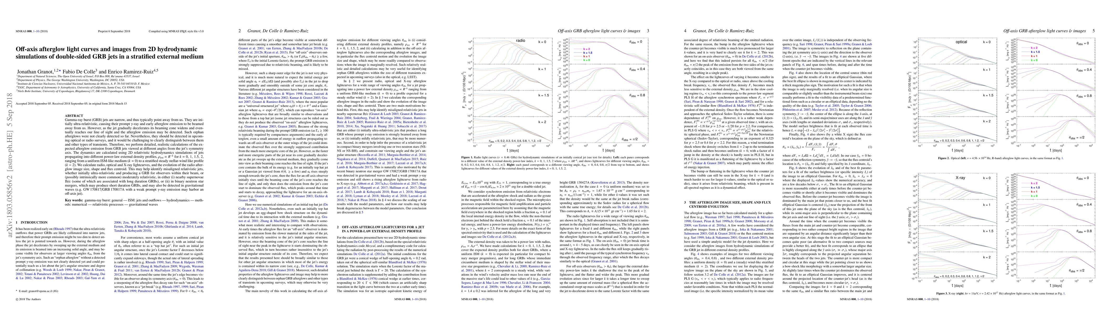 This paper uses 2D hydrodynamic simulations to model the off-axis afterglow light curves and images of double-sided gamma-ray burst (GRB) jets in various external mediums. The study aims to identify misaligned relativistic jets, which may originate from supernovae or binary neutron star mergers, potentially aiding in distinguishing orphan afterglows from other transients.