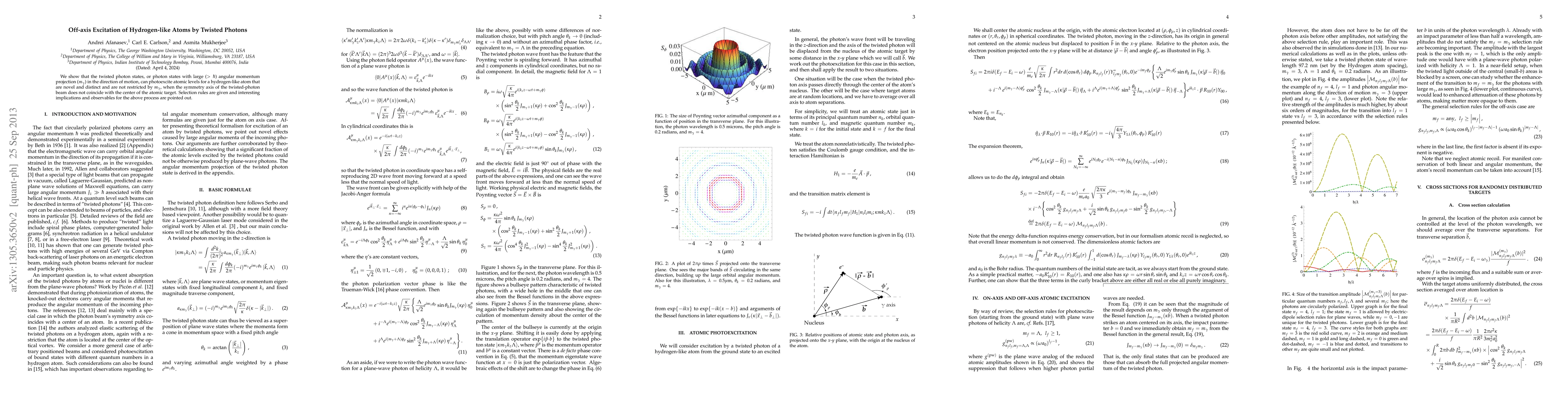 We show that the twisted photon states, or photon states with large ($> \hbar$) angular momentum projection ($m_\gamma$) in the direction of motion, can photoexcite atomic levels for a hydrogen-like atom that are novel and distinct and are not restricted by $m_\gamma$, when the symmetry axis of the twisted-photon beam does not coincide with the center of the atomic target. Selection rules are given and interesting implications and observables for the above process are pointed out.
