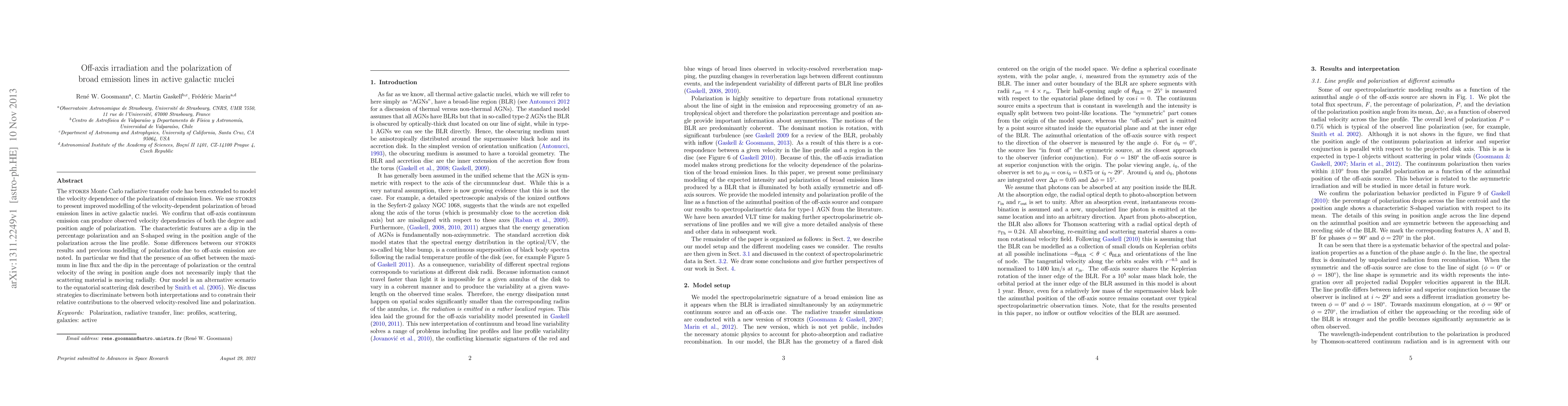 This paper uses the STOKES Monte Carlo code to model the polarization of broad emission lines in active galactic nuclei, showing that off-axis continuum emission can produce specific velocity-dependent polarization features. It proposes an alternative to the equatorial scattering disk model, suggesting strategies to distinguish between different scattering scenarios.