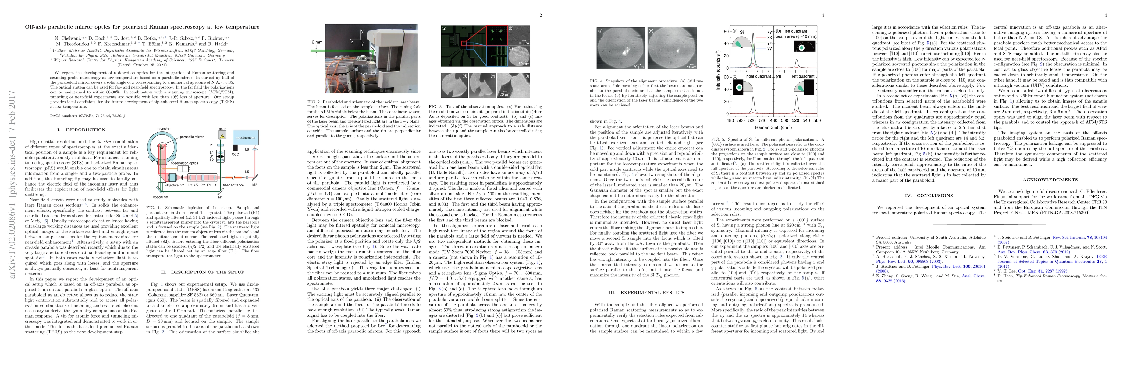This paper details the creation of an off-axis parabolic mirror optics system for polarized Raman spectroscopy at low temperatures, enabling integration with scanning probe microscopy. The system maintains polarization efficiency and allows for near-field spectroscopy with minimal aperture loss.
