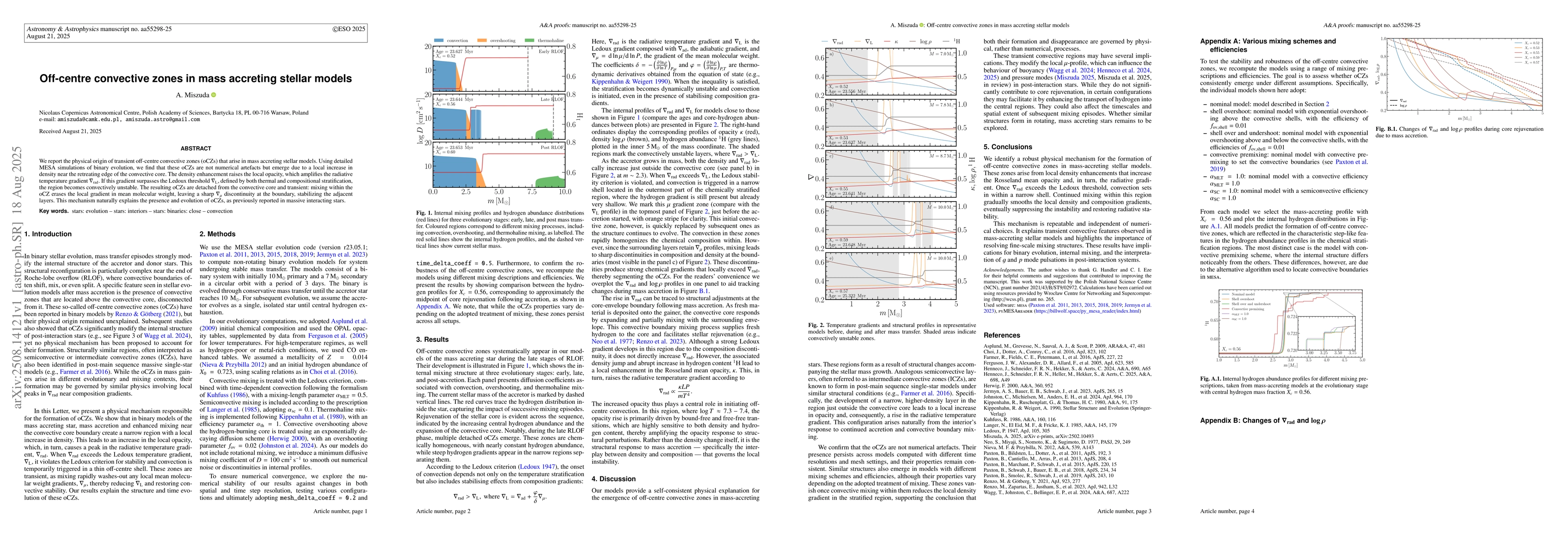 We report the physical origin of transient off-centre convective zones (oCZs) that arise in mass accreting stellar models. Using detailed MESA simulations of binary evolution, we find that these oCZs are not numerical artefacts but emerge due to a local increase in density near the retreating edge of the convective core. The density enhancement raises the local opacity, which amplifies the radiative temperature gradient $\nabla_{\rm rad}$. If this gradient surpasses the Ledoux threshold $\nabla_{\rm L}$, defined by both thermal and compositional stratification, the region becomes convectively unstable. The resulting oCZs are detached from the convective core and transient: mixing within the oCZ erases the local gradient in mean molecular weight, leaving a sharp $\nabla_{\mu}$ discontinuity at the boundary, stabilizing the adjacent layers. This mechanism naturally explains the presence and evolution of oCZs, as previously reported in massive interacting stars.