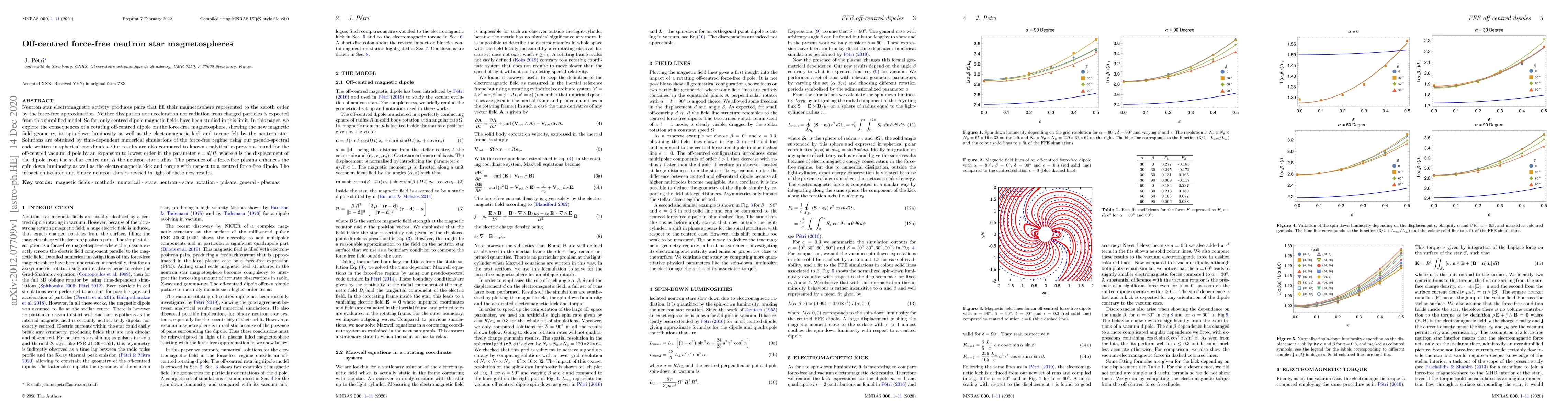 The paper presents a comprehensive numerical analysis of off-centered force-free neutron star magnetospheres, providing new insights into their geometry, spin-down luminosity, and electromagnetic interactions.