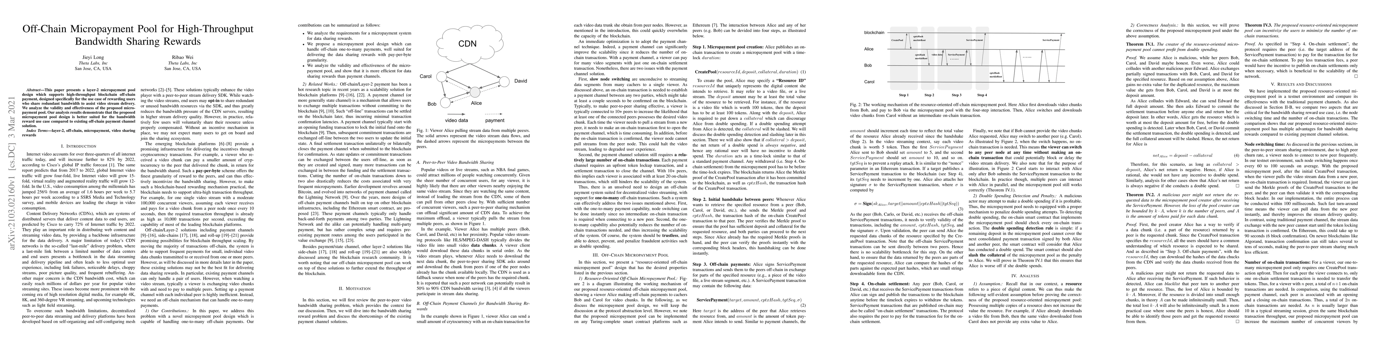 This paper presents a layer-2 micropayment pool design which supports high-throughput blockchain off-chain payment, designed specifically for the use case of rewarding users who share redundant bandwidth to assist video stream delivery. We analyze the validity and effectiveness of the proposed micropayment pool. Our analysis results demonstrate that the proposed micropayment pool design is better suited for the bandwidth reward use case compared to existing off-chain payment channel solution.