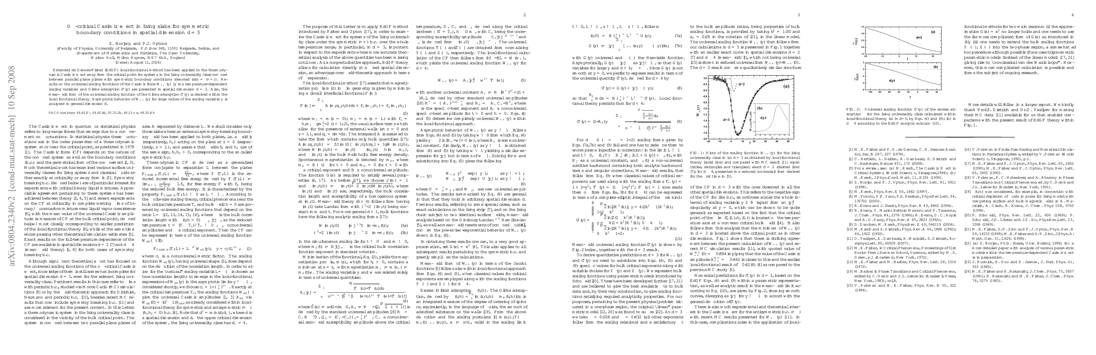 This paper applies the EdGF local-functional method to study the Casimir effect in Ising slabs with symmetric boundary conditions in 3D, presenting scaling functions for the Casimir force and Gibbs adsorption away from criticality. It also derives the mean-field form of the Gibbs adsorption scaling function and analyzes the asymptotic behavior of the Casimir force in general dimensions.