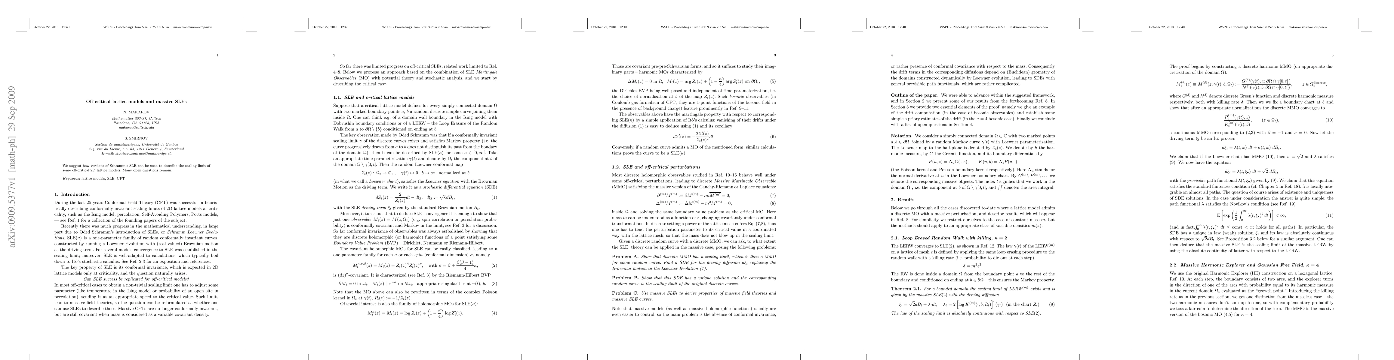 Researchers propose using versions of Schramm's SLE to describe the scaling limit of off-critical 2D lattice models, but many open questions remain.